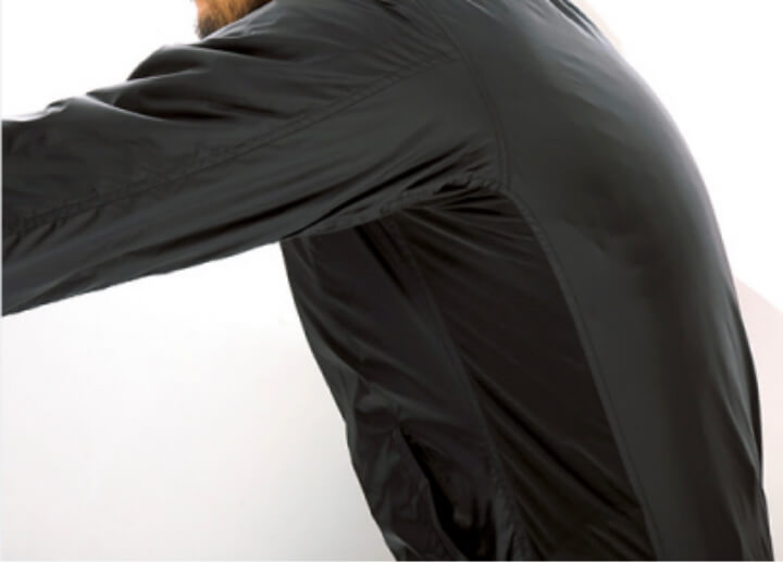 走行風が当たる太ももやスネを重点的に暖める。フィット感が高く、細身のパンツに合わせても動きやすいように立体裁断を採用。