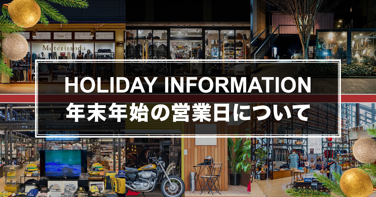 いつもMotorimodaをご愛顧いただき誠にありがとうございます。早いもので今年も残り僅かとなりました。今年も多くのお客様にご利用いただけたことにスタッフ一同、感謝しております。来年も皆さまのご多幸を心よりお祈り申し上げます。年末年始の各店舗の営業については下記の通りとなっております。