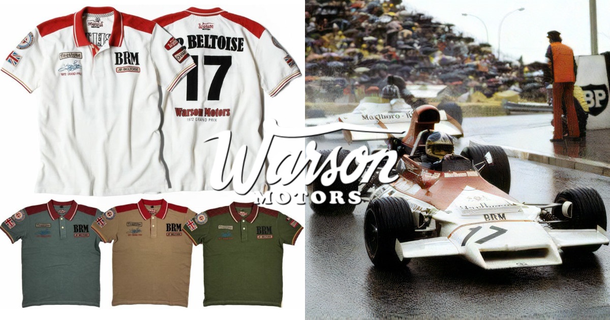 1972年のモナコGP。BRM P160Bという非力なマシンでありながら、ロータスやティレルといった強豪たちをラップ遅れにしてしまい、雨のモナコで勝利を挙げるという快挙を成し遂げたフランス人F1ドライバー、ジャン = ピエール・ベルトワーズのベストレースをインスパイアしたポロシャツの新色(ブルー・ライトグレー・ミリタリーグリーン)が登場。2月入荷予定にて予約受付を開始しました。