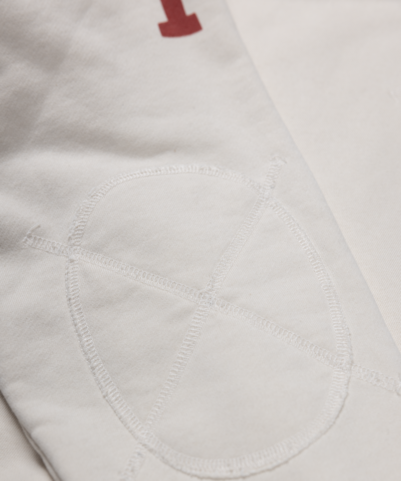 ヴィンテージモトクロスのウェアをイメージしたデザインで、胸元にはシンプルなブランドロゴ、背中には大きなゼッケンがプリントされており、そのフォント使いもどこかレトロな雰囲気を醸し出しています。