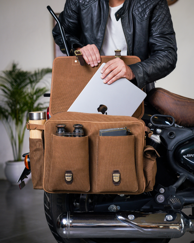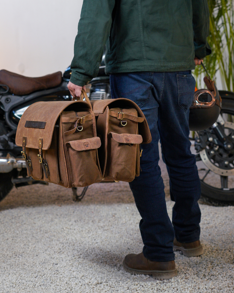 ロイヤルエンフィールド メテオ350およびスーパーメテオ650専用に開発されたエクスペディション サドルバッグ。