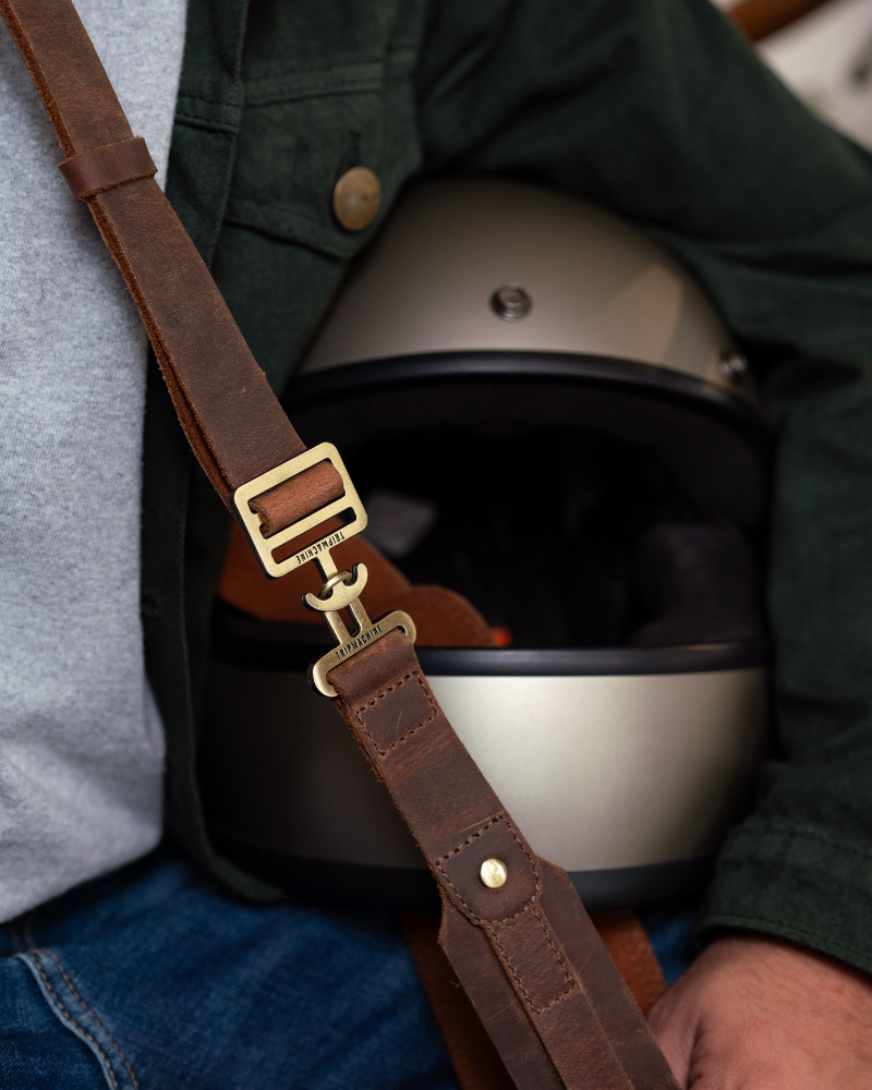 厚さ2.0mmの耐久性に優れた柔らかいハーネスレザーで作られており、ヘルメットをしっかりと保護しながら持ち運ぶことができます。ヘルメットと肩に当たる部分にはクッションが備わり、長時間の持ち運びでも疲れにくいです。