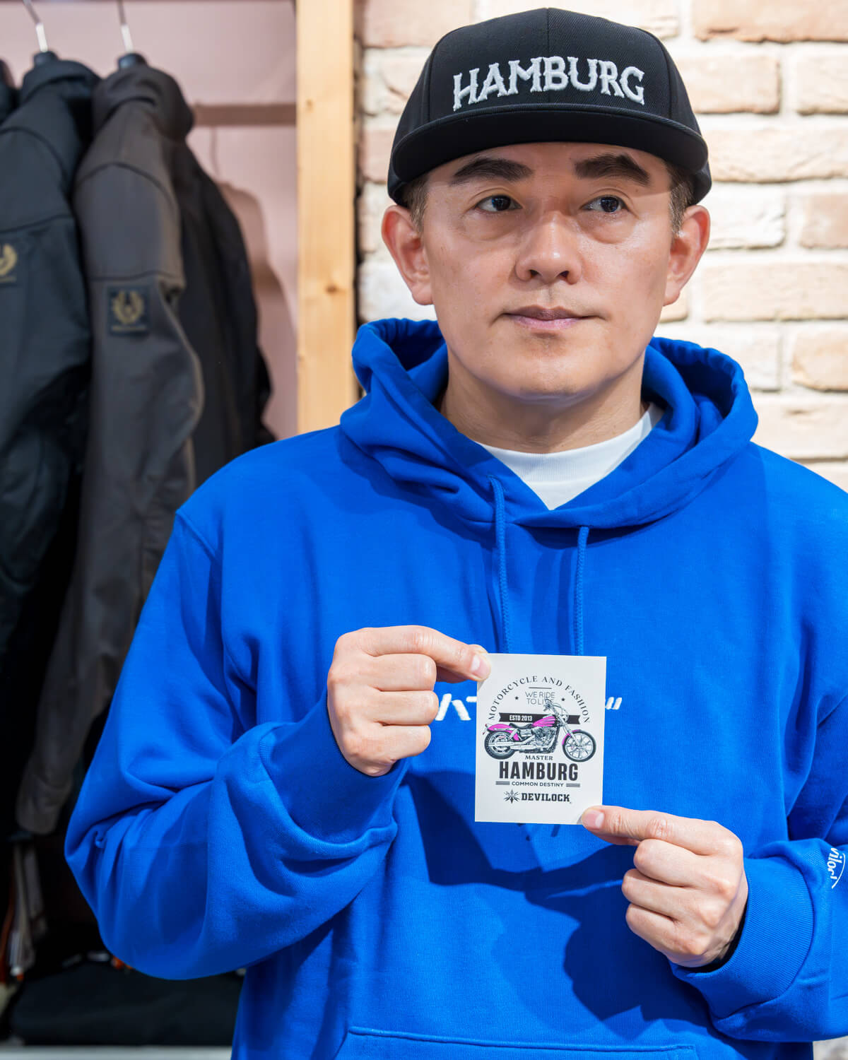 バイク乗りであり、人気お笑いタレントとして、さまざまなフィールドで活躍するハンバーグ師匠こと井戸田潤氏。実はファッションセンスも抜群で、1996年に誕生した恵比寿系ブランドの元祖「DEVILOCK(デヴィロック)」とのコラボレーショングッズを展開しています。