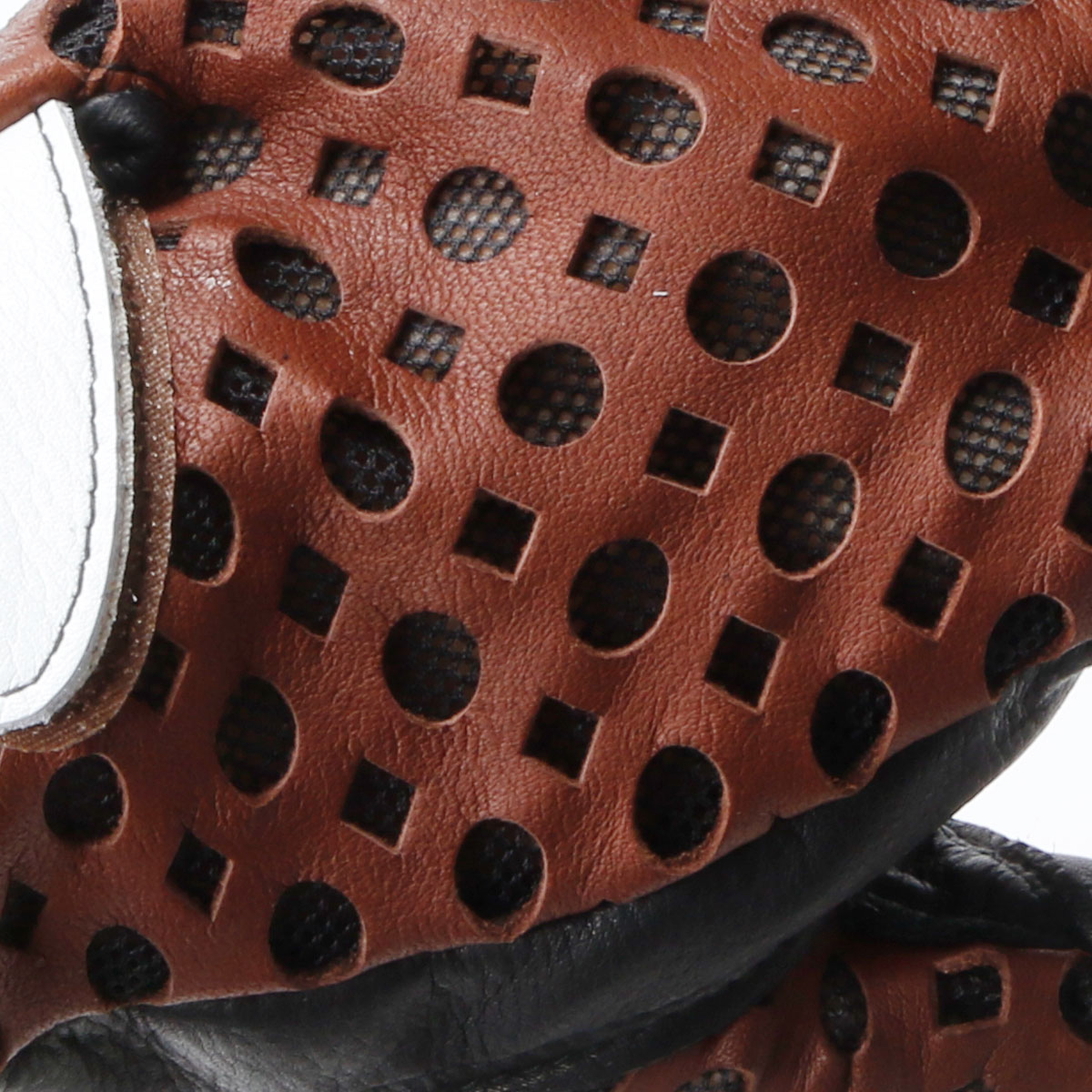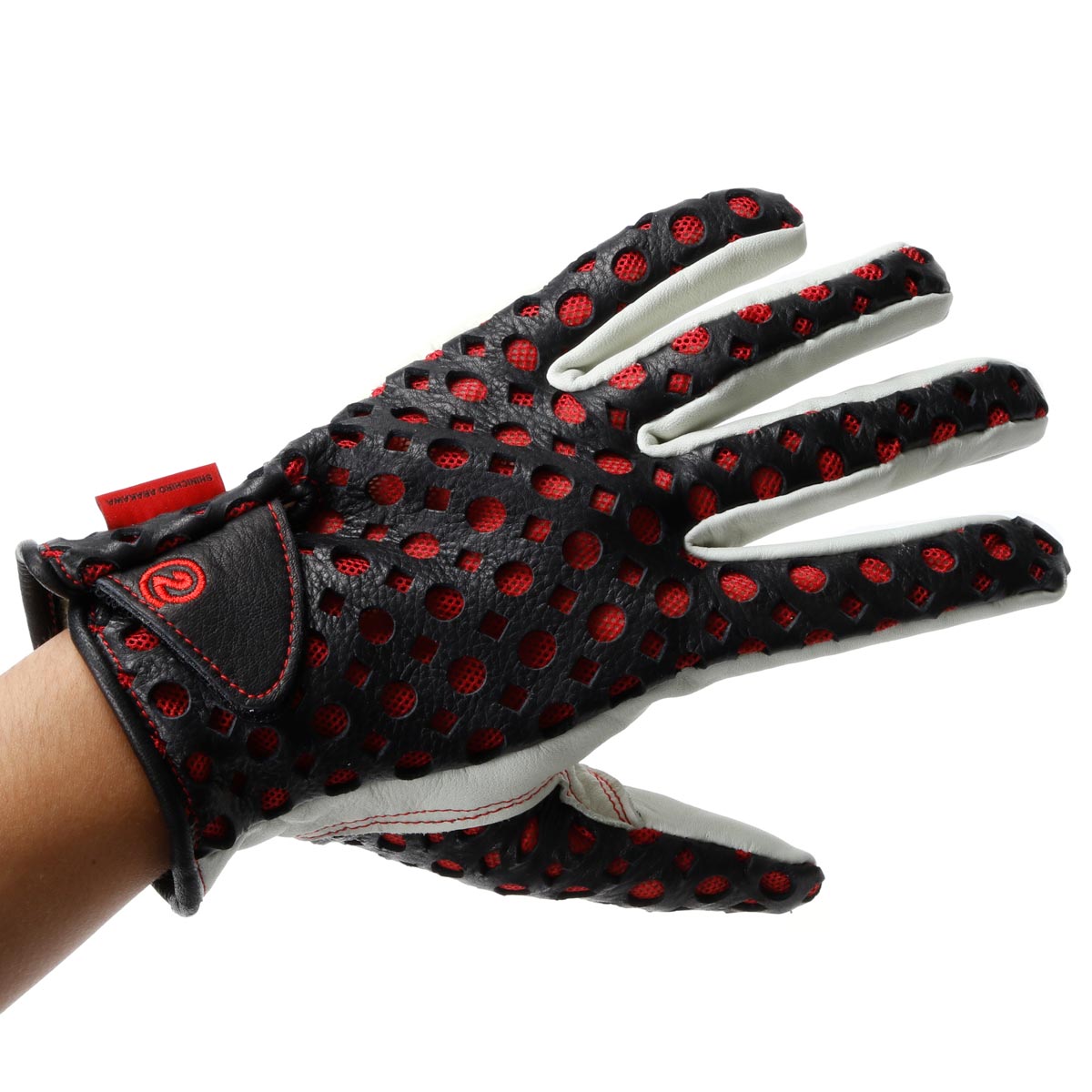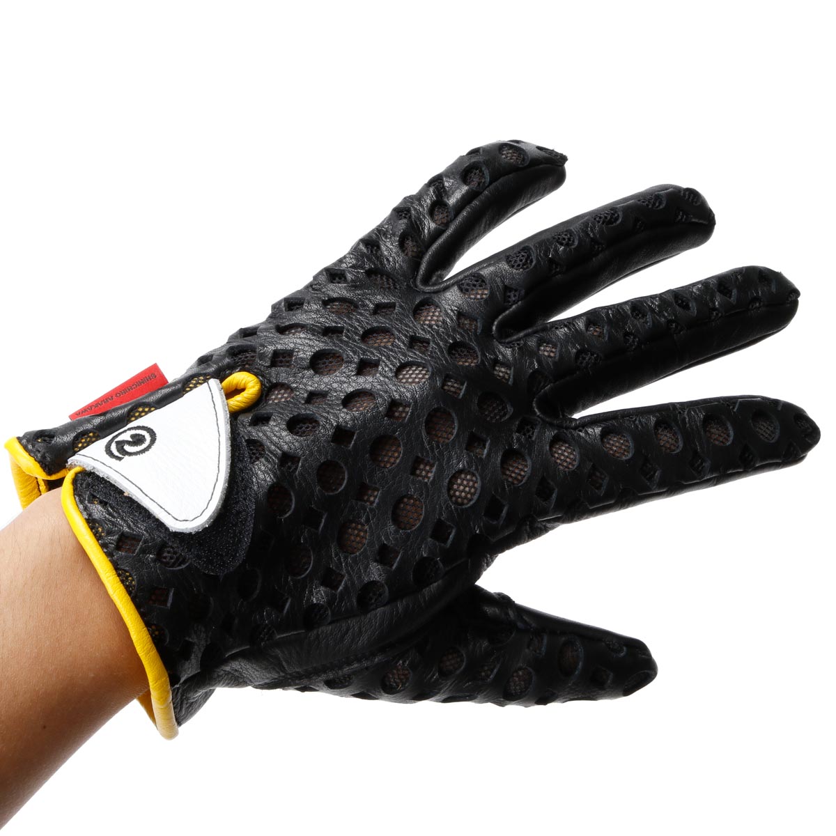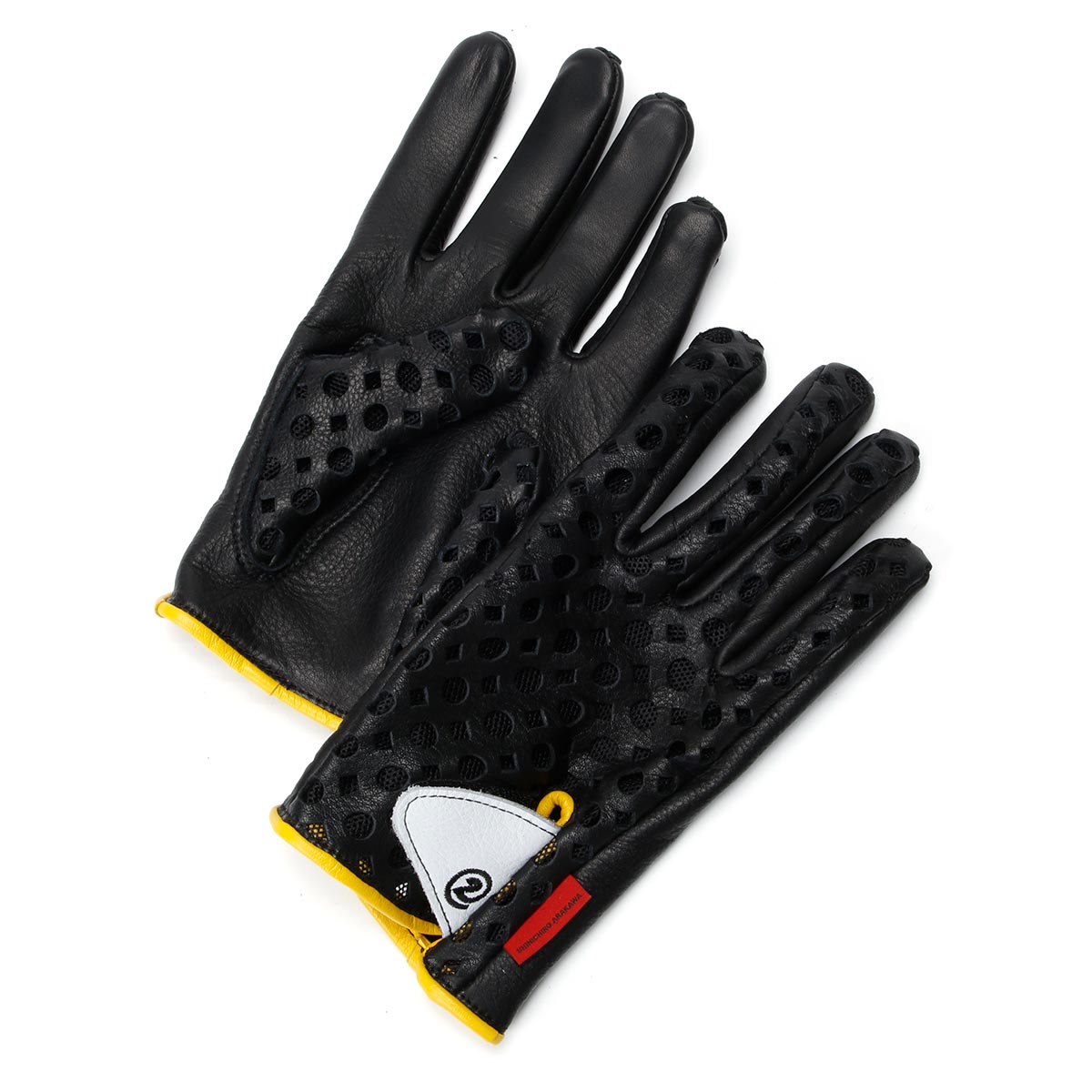 また、今回初めての試みとなる、パンチングメッシュのドライビンググローブは、当社とSHINICHIRO ARAKAWAの共同企画。大胆に設けられたパンチングレザーと裏地のメッシュ生地で通気性抜群。手のひら部分には余分なパッチを排し、ドライビングに特化した作りとなっています。