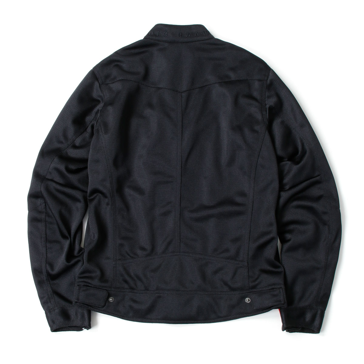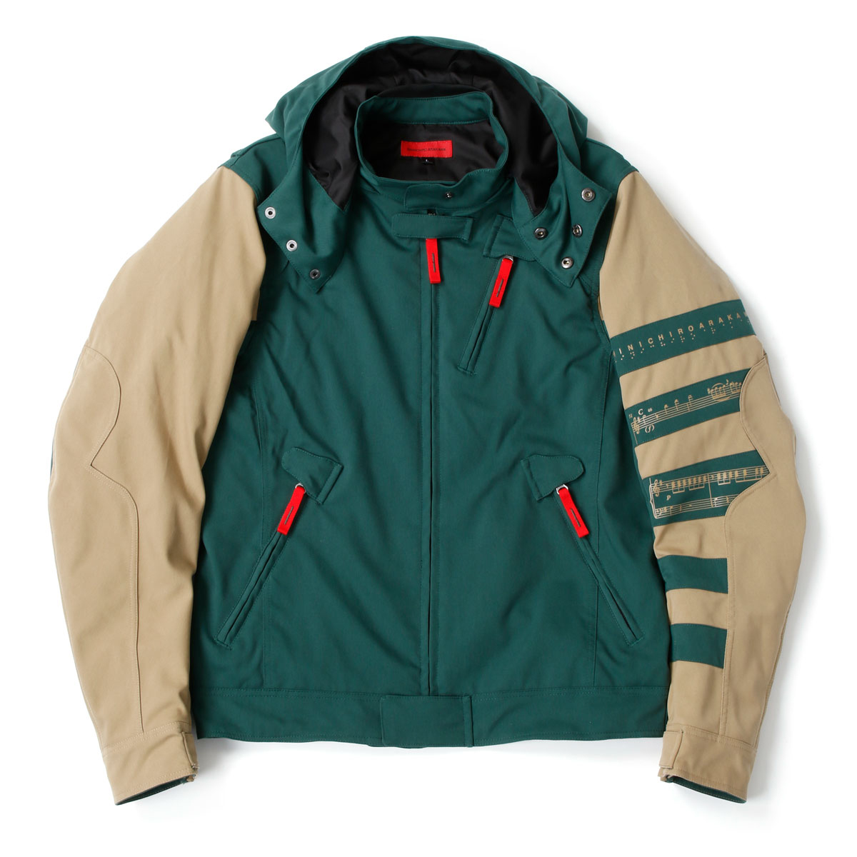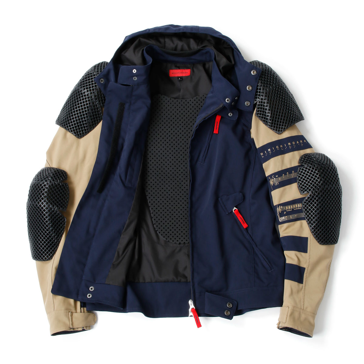 毎年高い人気を誇るメッシュジャケットの今作は、フランス語で「宝石」を意味する「Bijoux(ビジュー)」と名付けられ、光沢のある素材感と相まってまさに宝石のような一着。着脱式のフードを備えたH33nフーディはシックなブラックと、バイカラーが映えるネイビー×キャメルとネイビー×グリーンの3色展開となっており左腕にデザインされた五線譜がバイクウェアらしからぬテイストを与えています。どちらのジャケットも同ブランドの特徴である、肩周りの可動域が広い特徴的なパターンで作られています。
