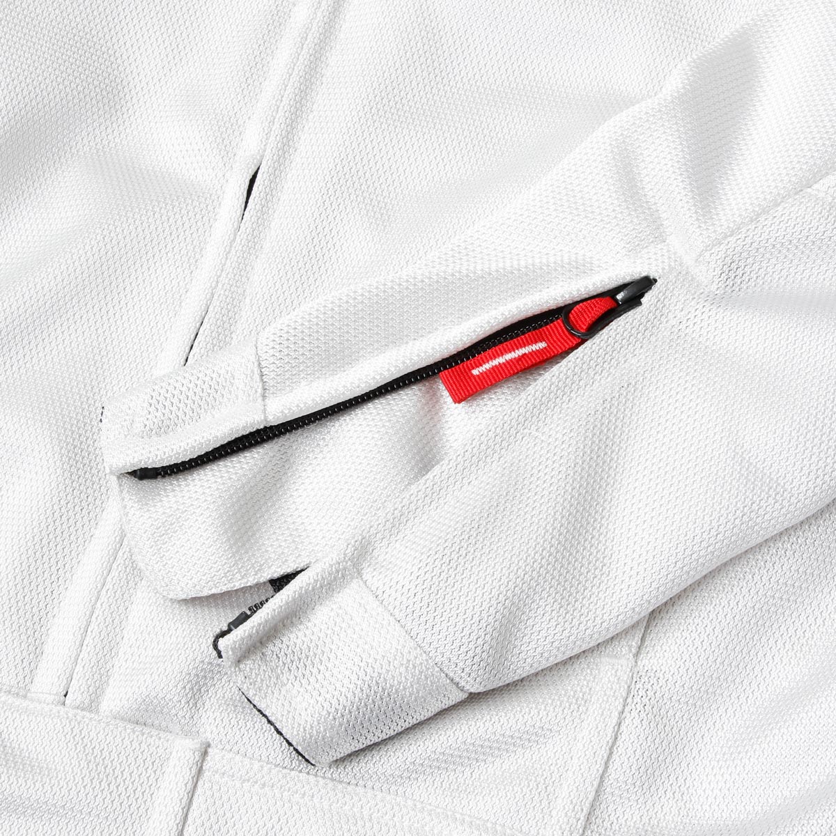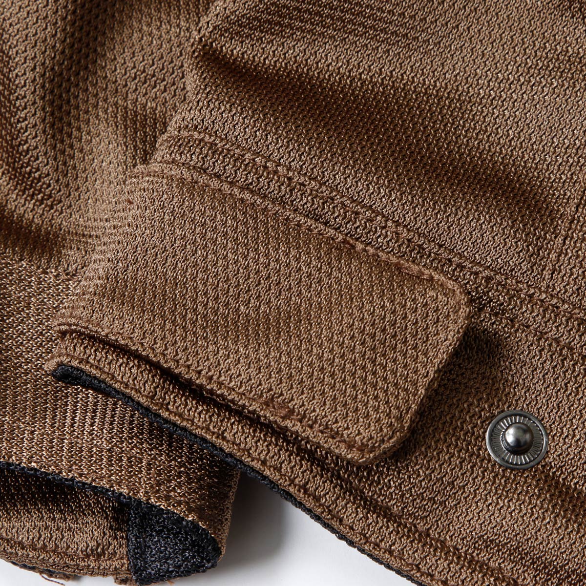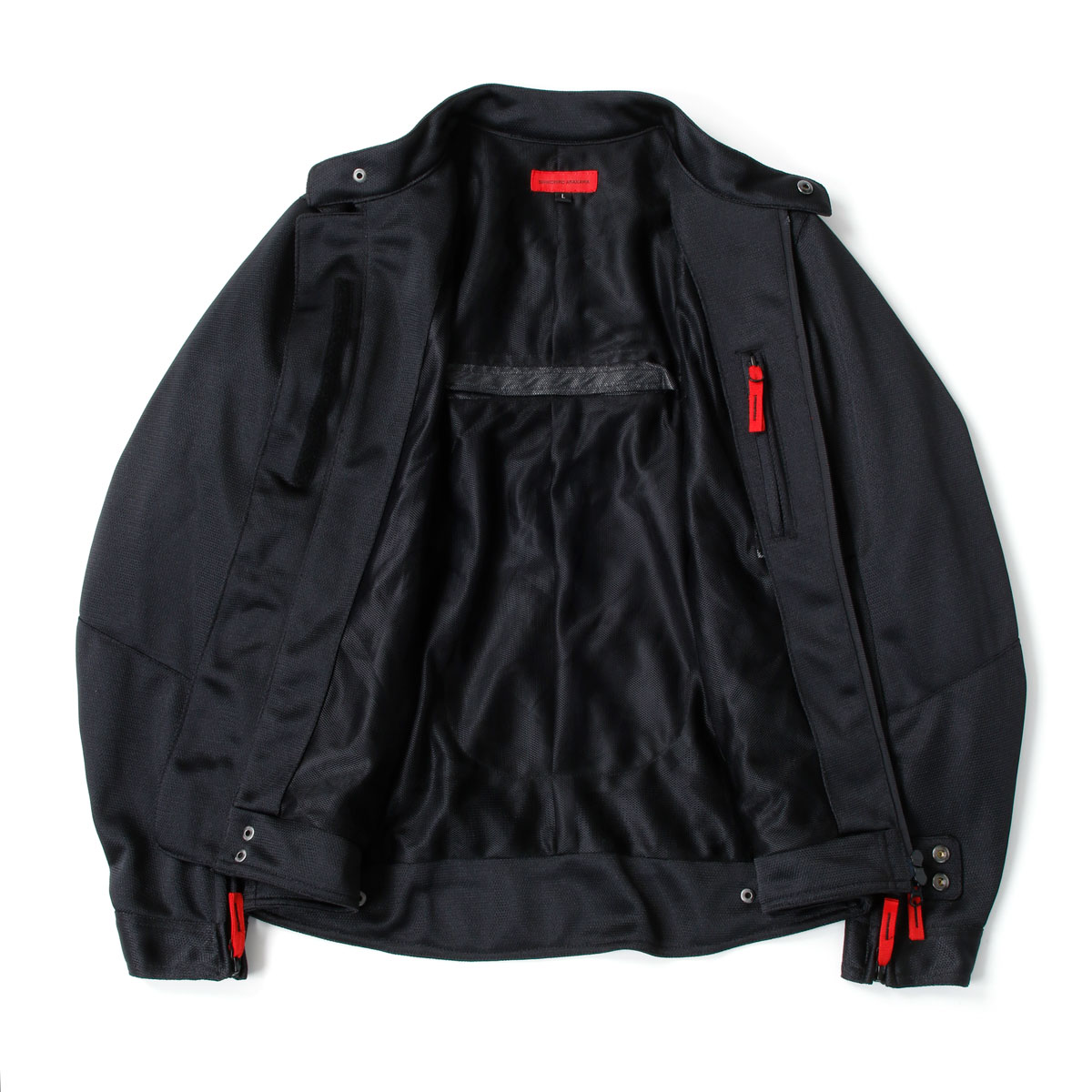 毎年高い人気を誇るメッシュジャケットの今作は、フランス語で「宝石」を意味する「Bijoux(ビジュー)」と名付けられ、光沢のある素材感と相まってまさに宝石のような一着。着脱式のフードを備えたH33nフーディはシックなブラックと、バイカラーが映えるネイビー×キャメルとネイビー×グリーンの3色展開となっており左腕にデザインされた五線譜がバイクウェアらしからぬテイストを与えています。どちらのジャケットも同ブランドの特徴である、肩周りの可動域が広い特徴的なパターンで作られています。