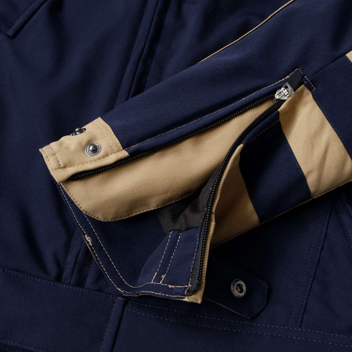 身体の可動性が通常のウェアよりも多く、服が体へ与える負荷が少ない構造で、定番アイテムとして企画されたシンプルなデザインのブルゾンです。