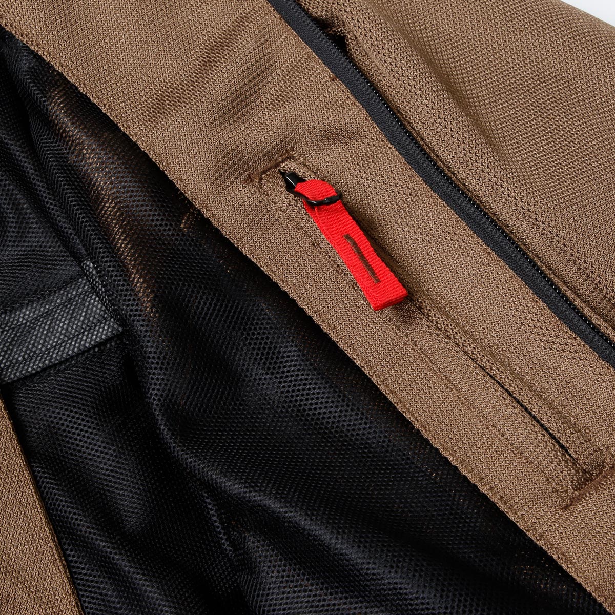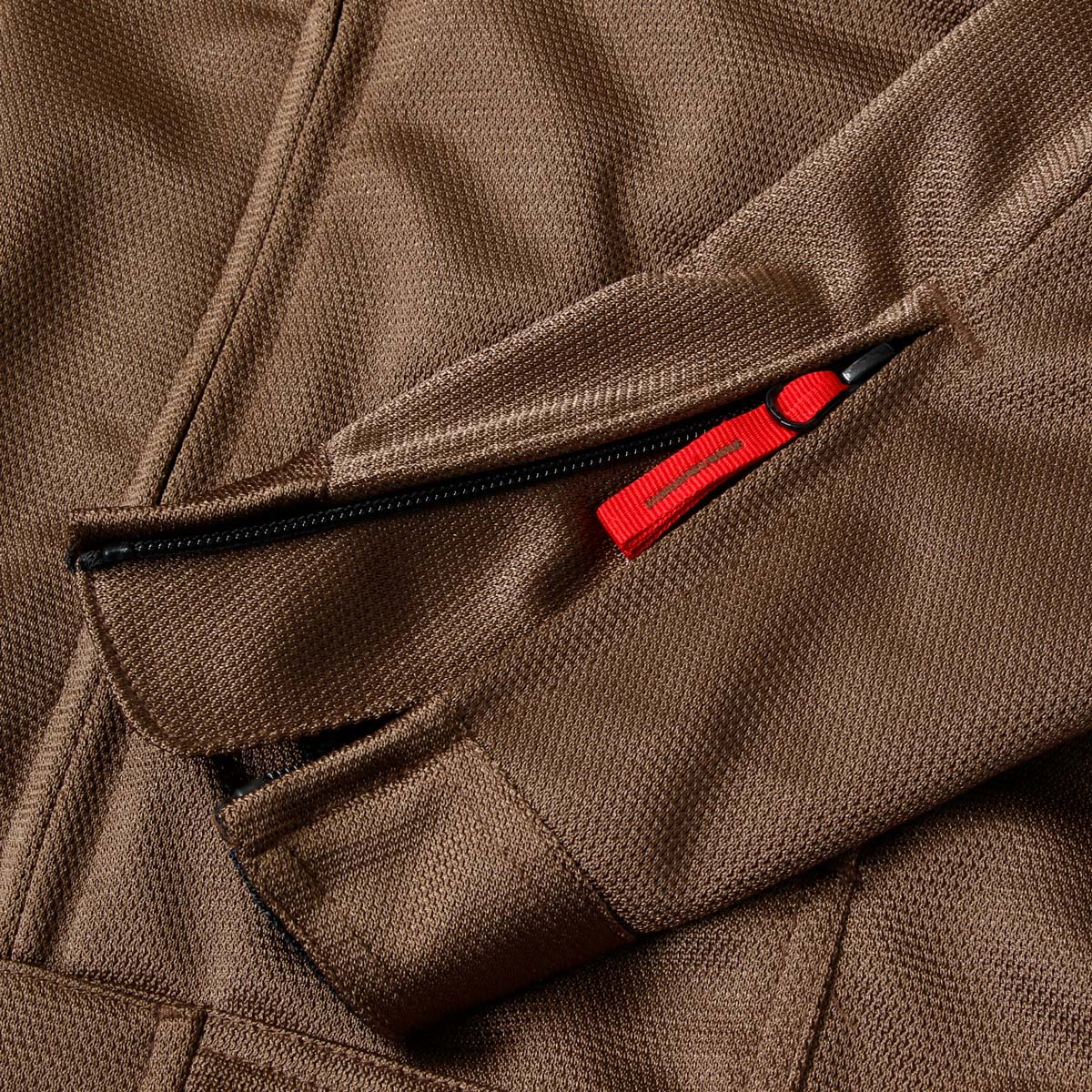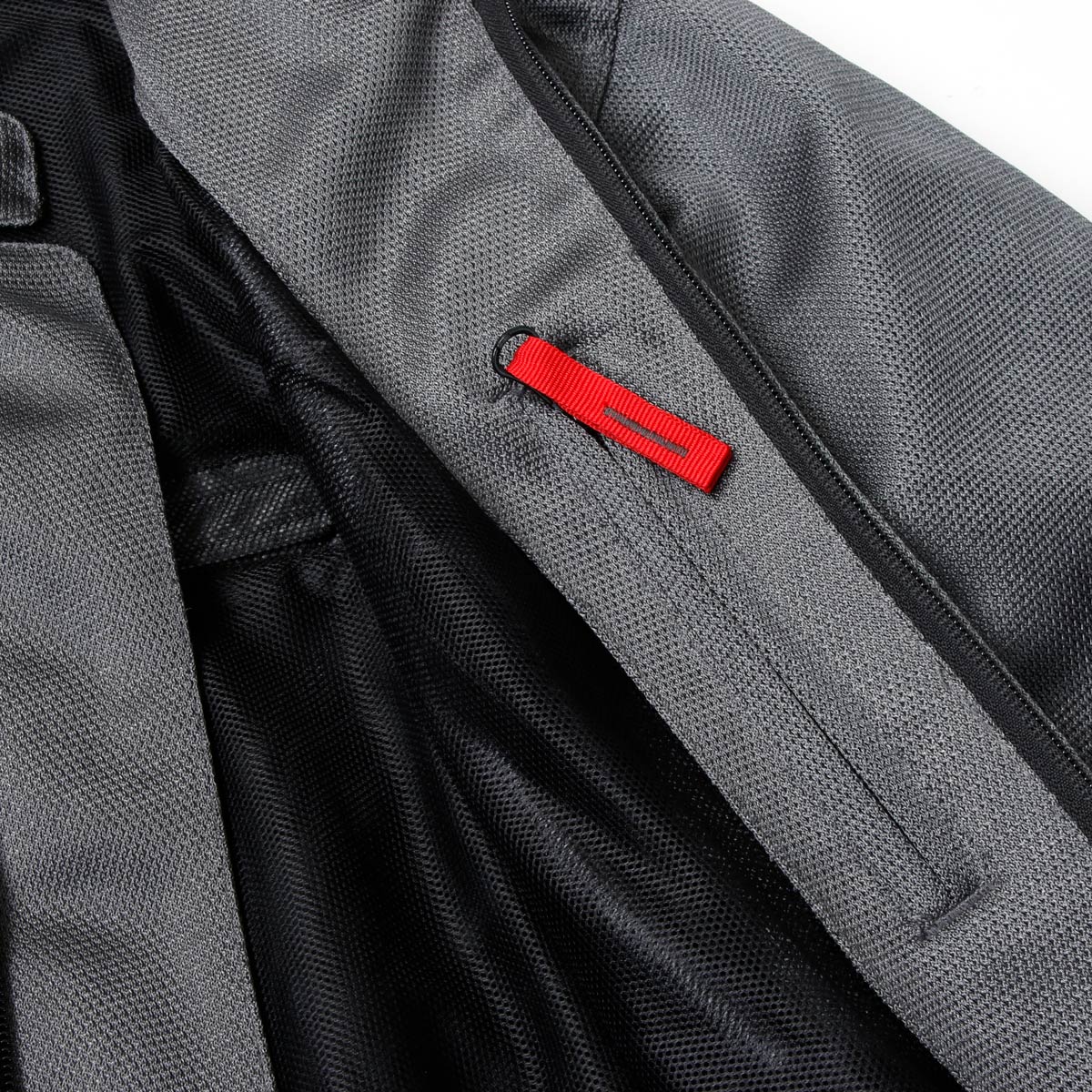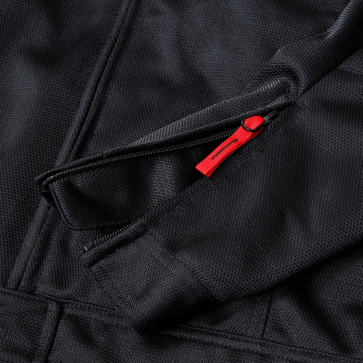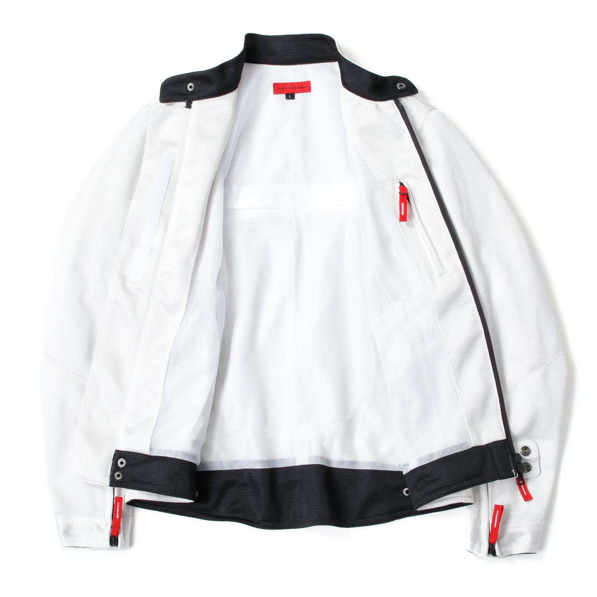 肩、肘、背中には標準で簡易的なプロテクターが付属。オプションで胸部プロテクター装着可能なベルクロが装備されています。