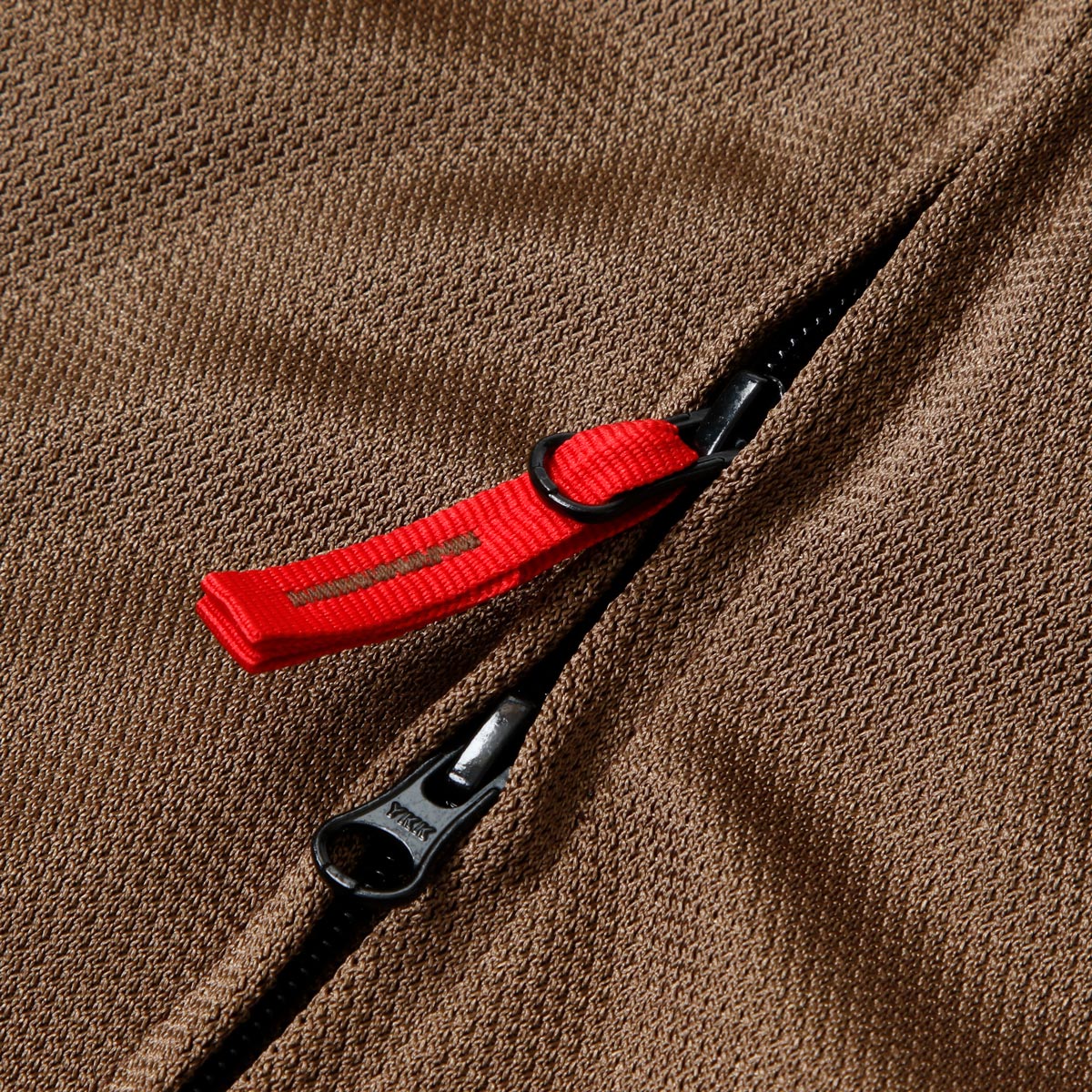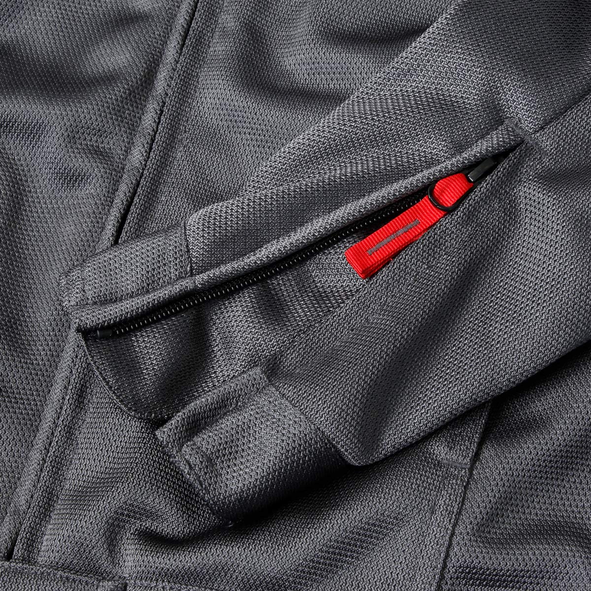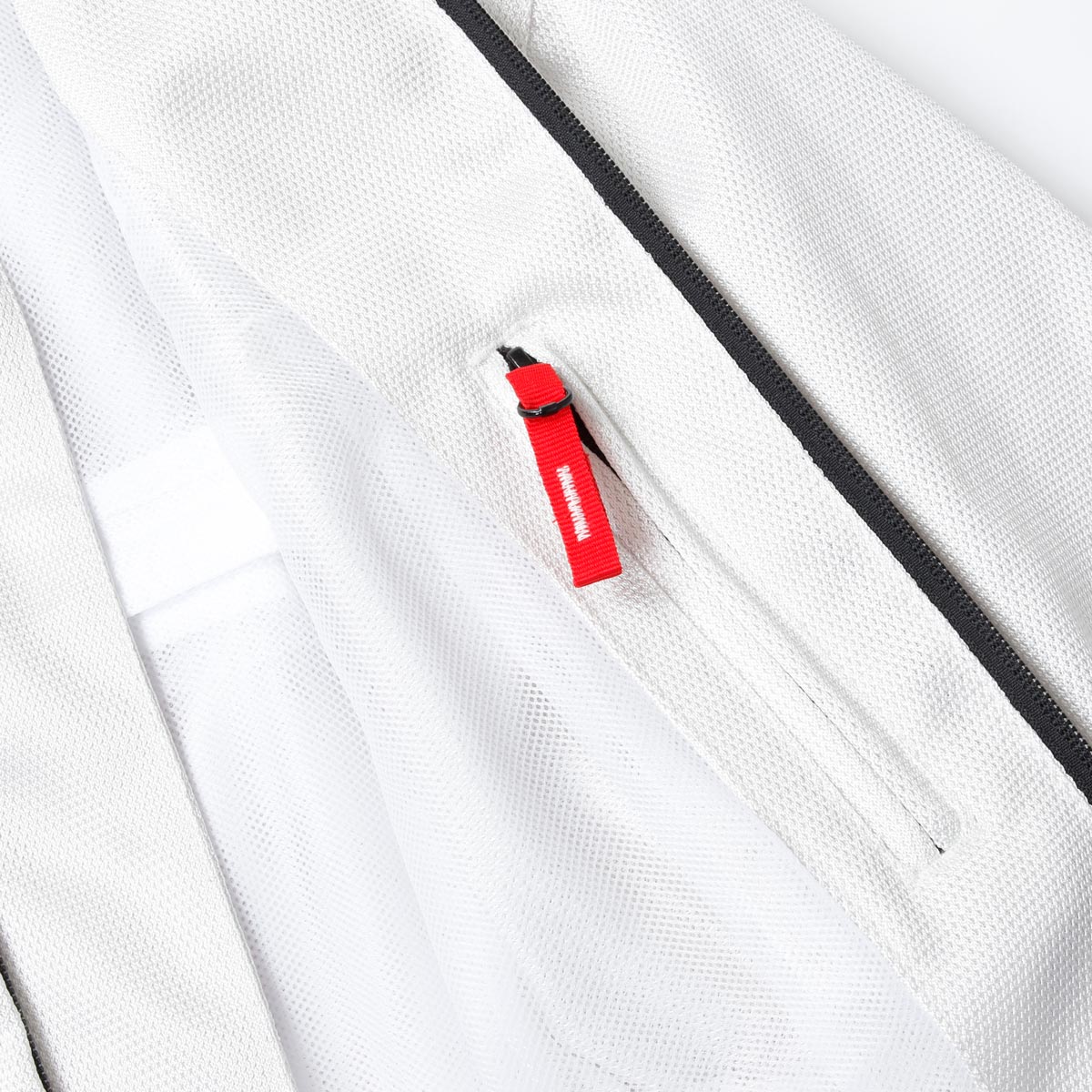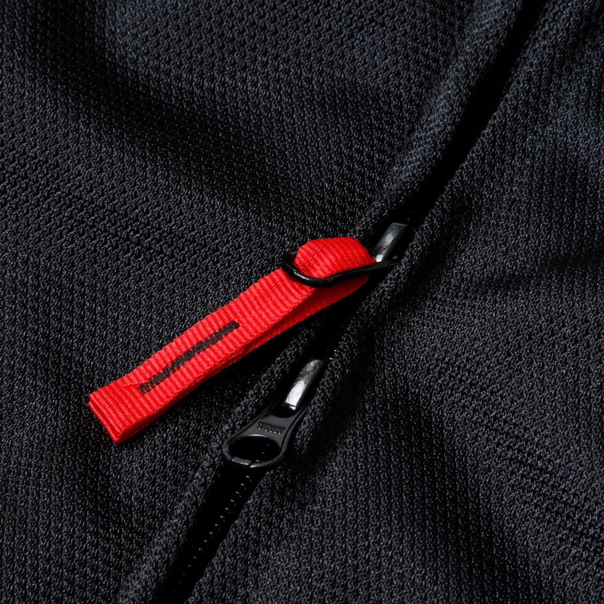 肩、肘、背中には標準で簡易的なプロテクターが付属。オプションで胸部プロテクター装着可能なベルクロが装備されています。