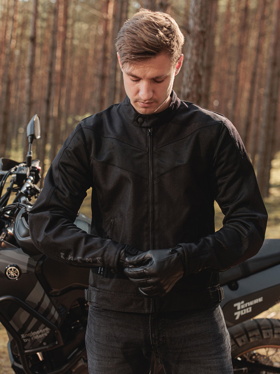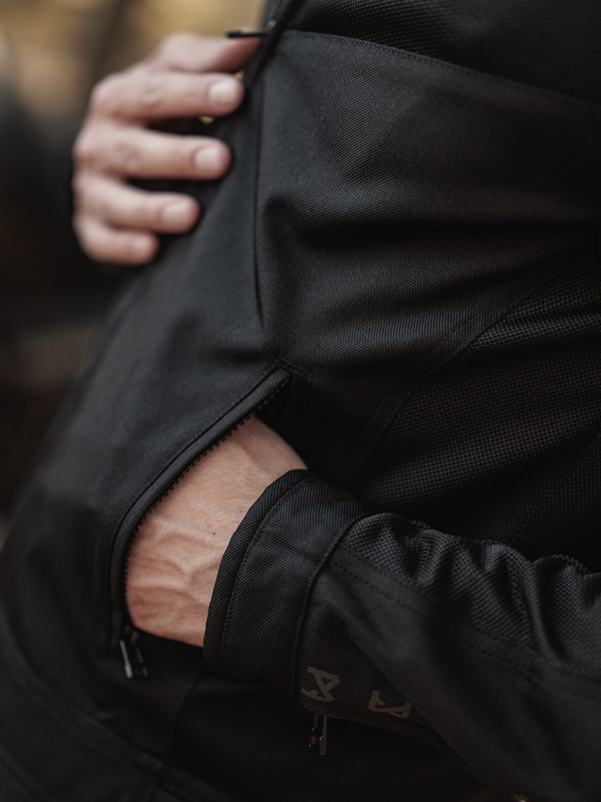 全天候対応し、機能性、安全性、快適性を兼ね備えたライディングジャケット。