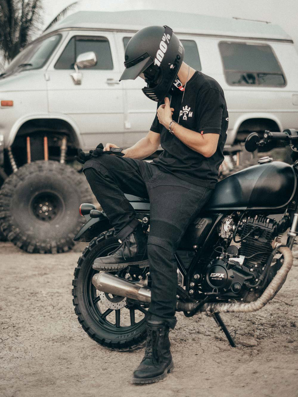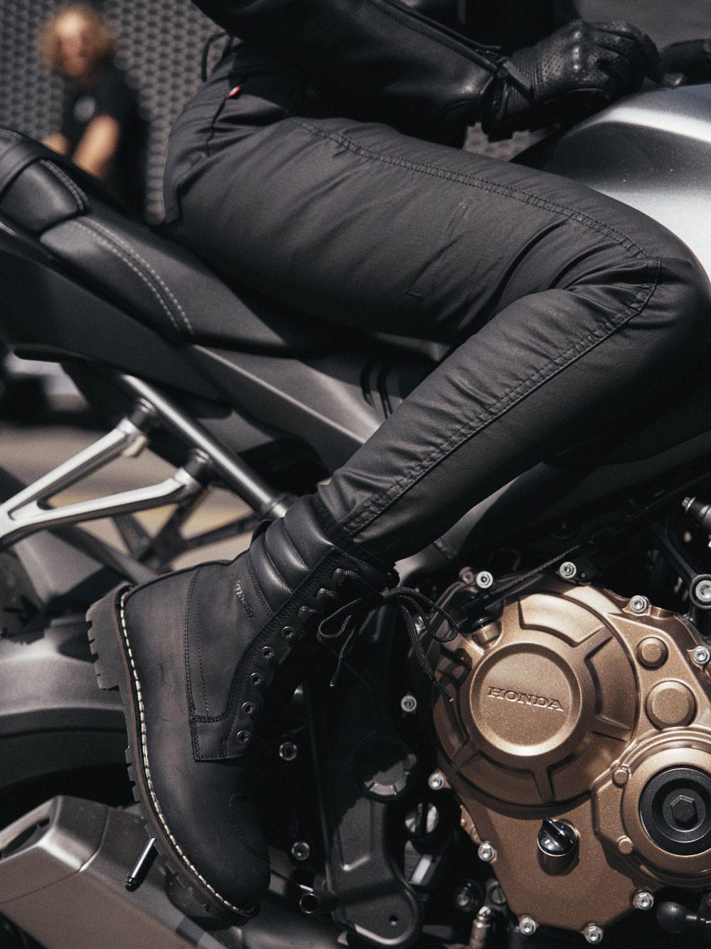 細部までこだわり抜いた軽快なスリムフィットのライディングパンツ。