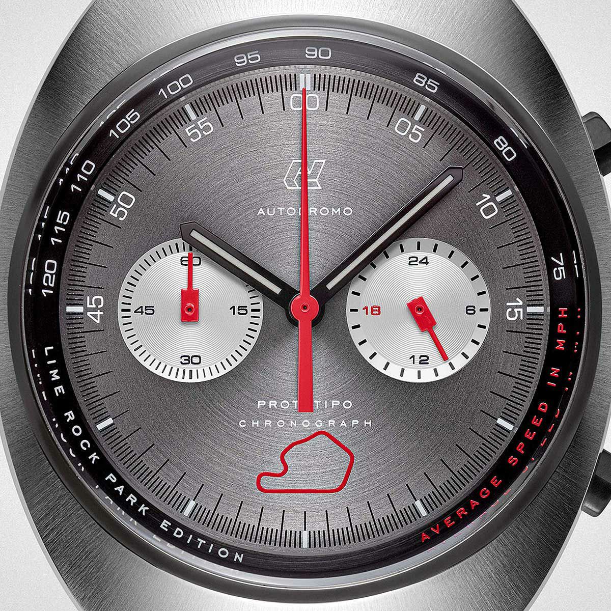 IMSAスポーツカー選手権も開催されるライム ロック パークは、アメリカのコネチカット州に構える、全長2.41kmに及ぶサーキット。アルファロメオ ジュリエッタ スパイダーのステアリングを握り、自らレースを楽しんでいるアウトドローモの代表、ブラッドリー・プライス氏は10年以上前から、同サーキットにて開催されているヒストリック フェスティバルに参加。現在では同イベントのオフィシャルウォッチパートナーを3年連続で務めていることから、今回の限定コラボレーションモデルをリリースすることになりました。