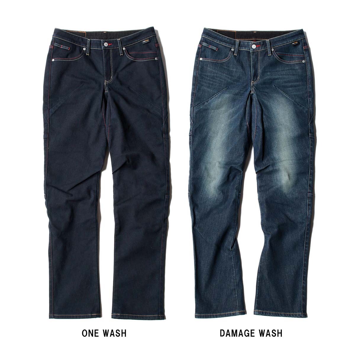 さらに、ニープロテクター用ポケットも装備し、別売りのOption Knee Padsが使用可能です。サイズバリエーションも豊富で、ワンウォッシュとダメージウォッシュの2タイプを用意しています。」