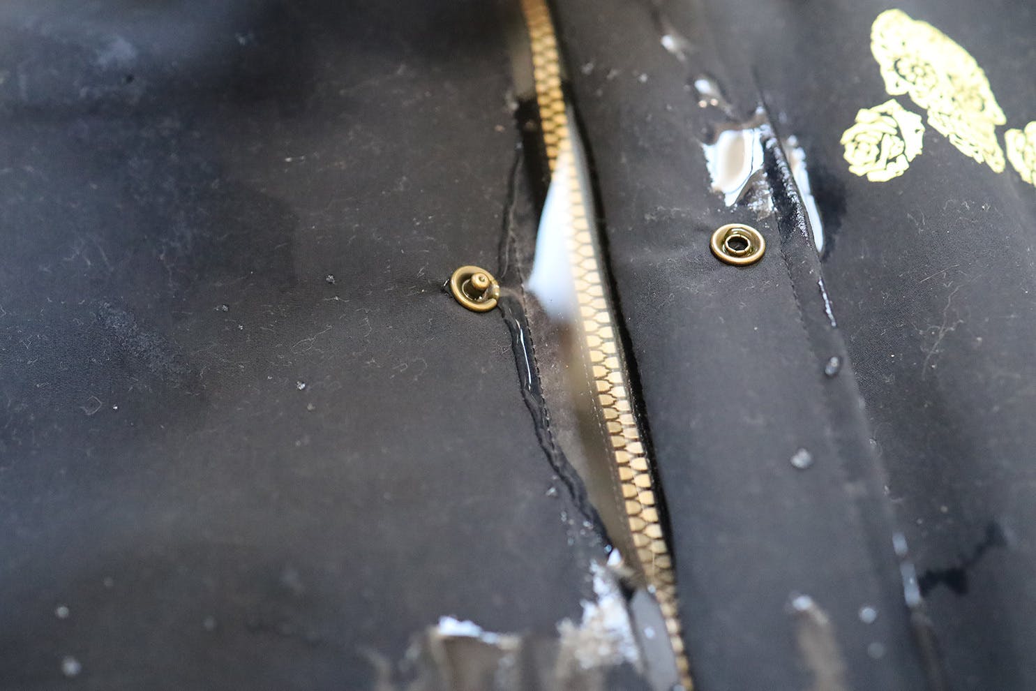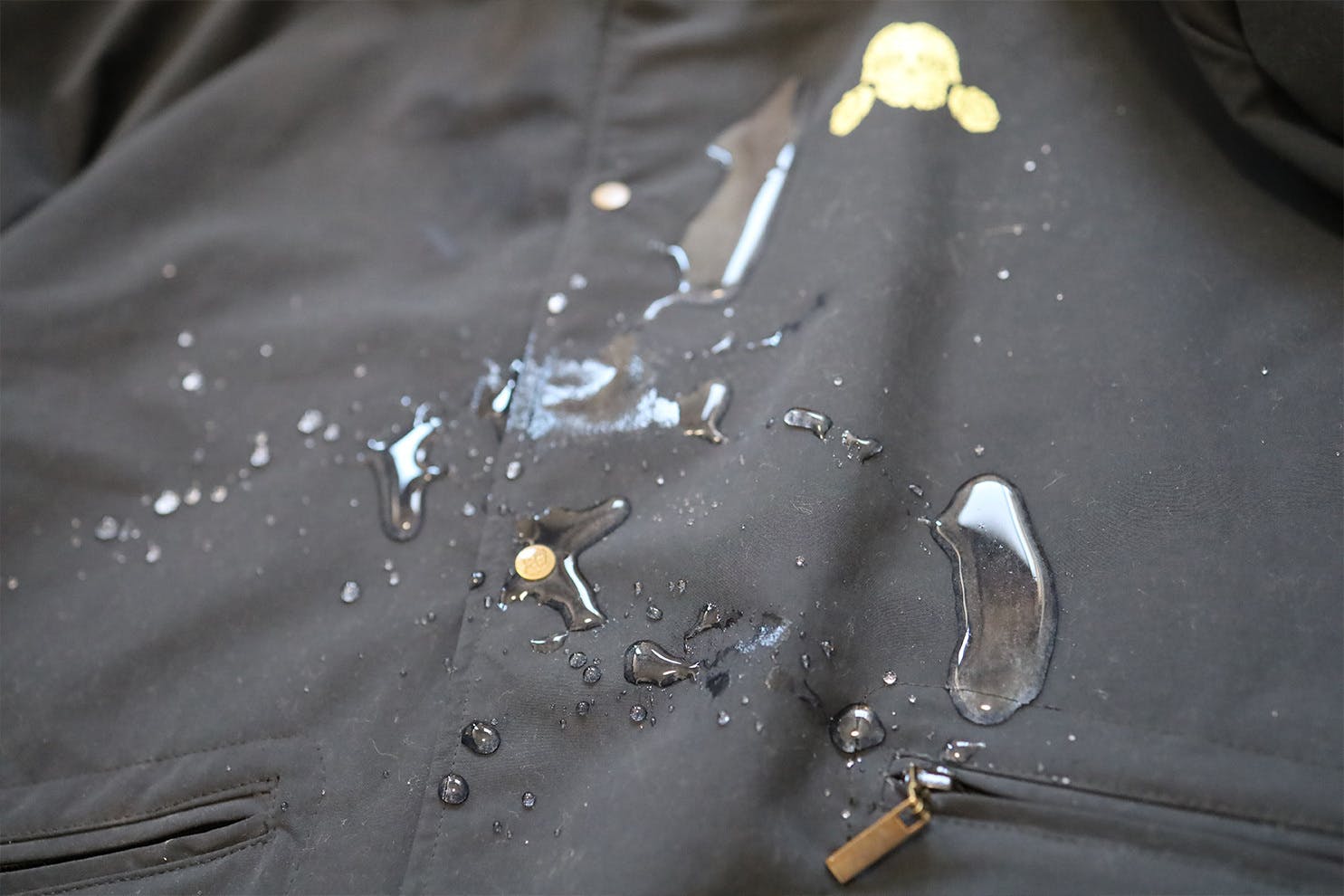 耐水圧は20,000mmレベル、透湿度は8,000g/㎡/24hrレベルとなっており、継続した雨でなければ問題なく着用可能です。(仕様上、縫い目の裏側のシールができませんので完全防水ではございません)