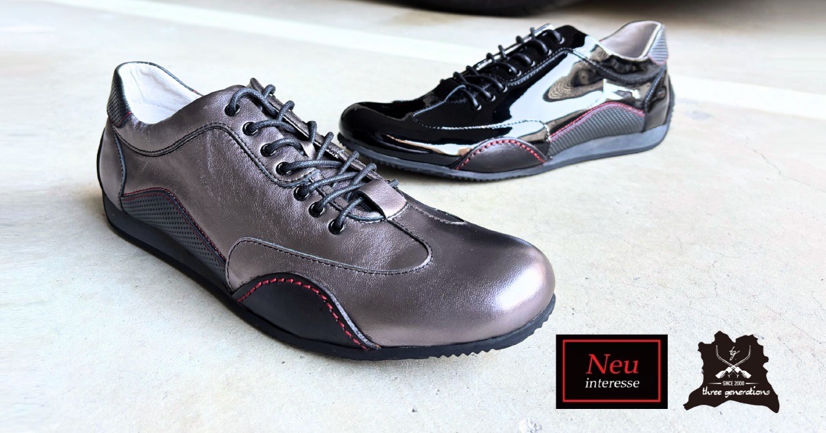 ノイインテレッセとのコラボシューズを展開しているスリージェネレーションズの定番モデル、NI-2425の2025年春限定カラー「ガンメタリック」と「ブラックパテント」の先行受注会をA PIT オートバックス 東雲にて開催中です。開催期間中はサンプルを展示しており、実際の色味をご確認いただけます。気になる方は是非ご来店ください。