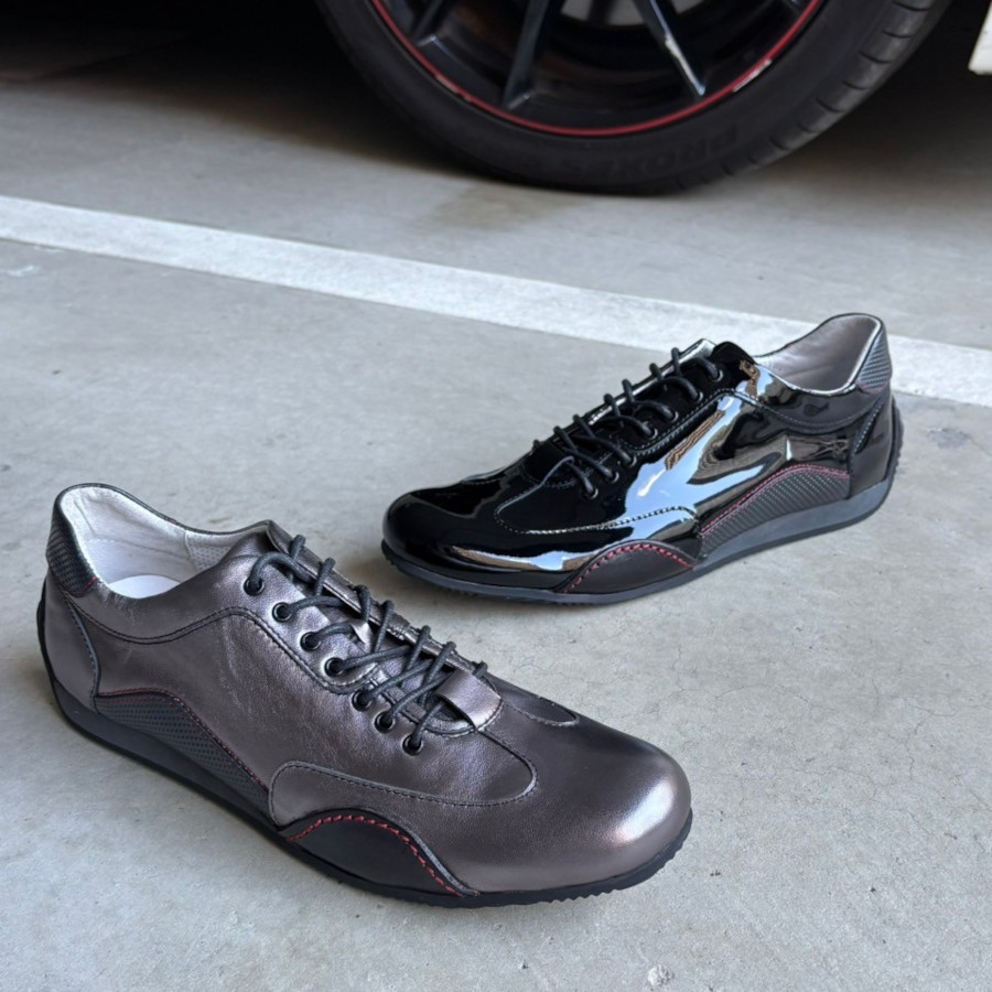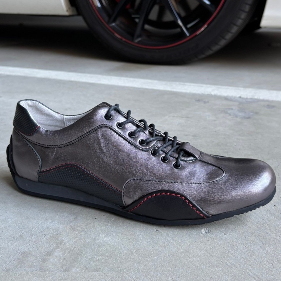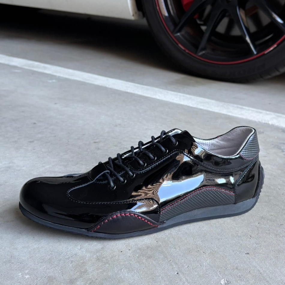 モーターカルチャーブランド「neu interesse」とのコラボレーションモデル。ハイブリッドレザーを使用し、普段履きとドライビングを両立したマルチユースのレザースニーカーです。