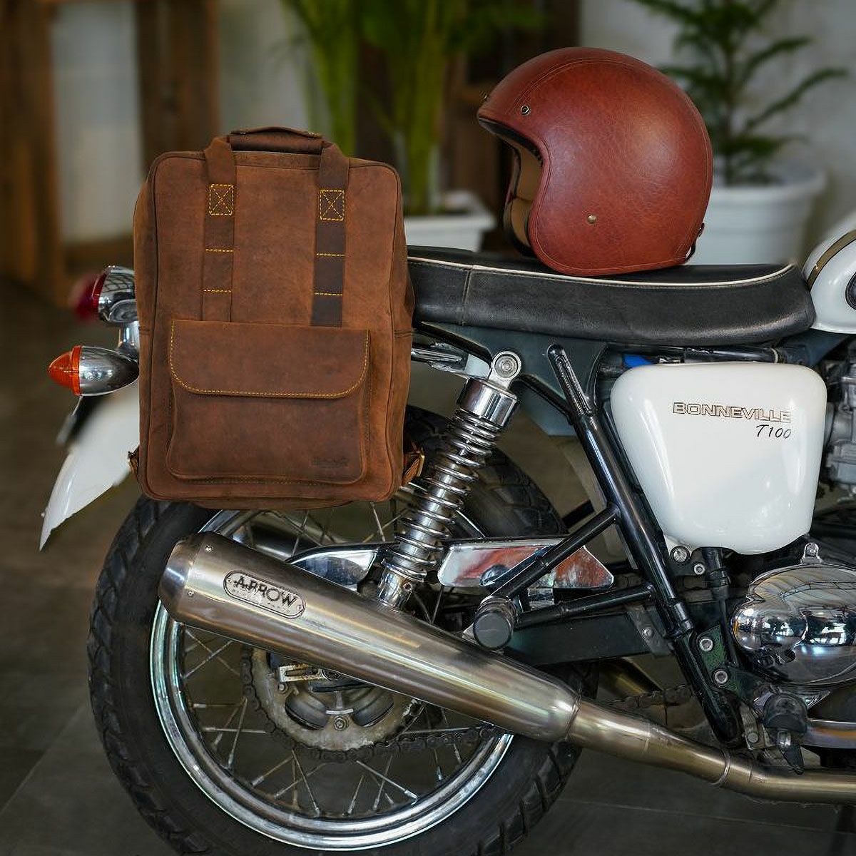 「イーストウッド バックパック」はサドルバッグ、テールバッグ、バックパックの機能を持ち合わせた、使い勝手の良い3Wayバッグ。厚さ2.2mmの重厚なレザーを使用。耐久性に優れたハードワックス加工が施されており、使い込むほどに味わいが増します。
