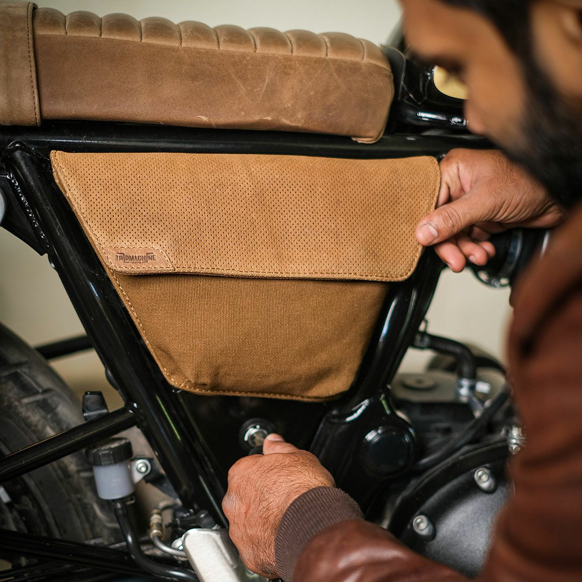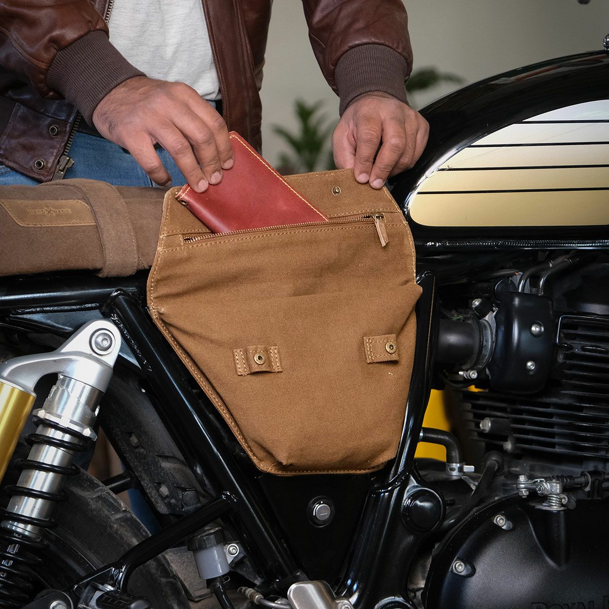「レネゲード サイド パネル」はロイヤルエンフィールド INTERCEPTOR / CONTINENTAL GT 専用に作られたサイドパネルバッグ。お得な左右ペアセットと、片側のみの販売がございます。