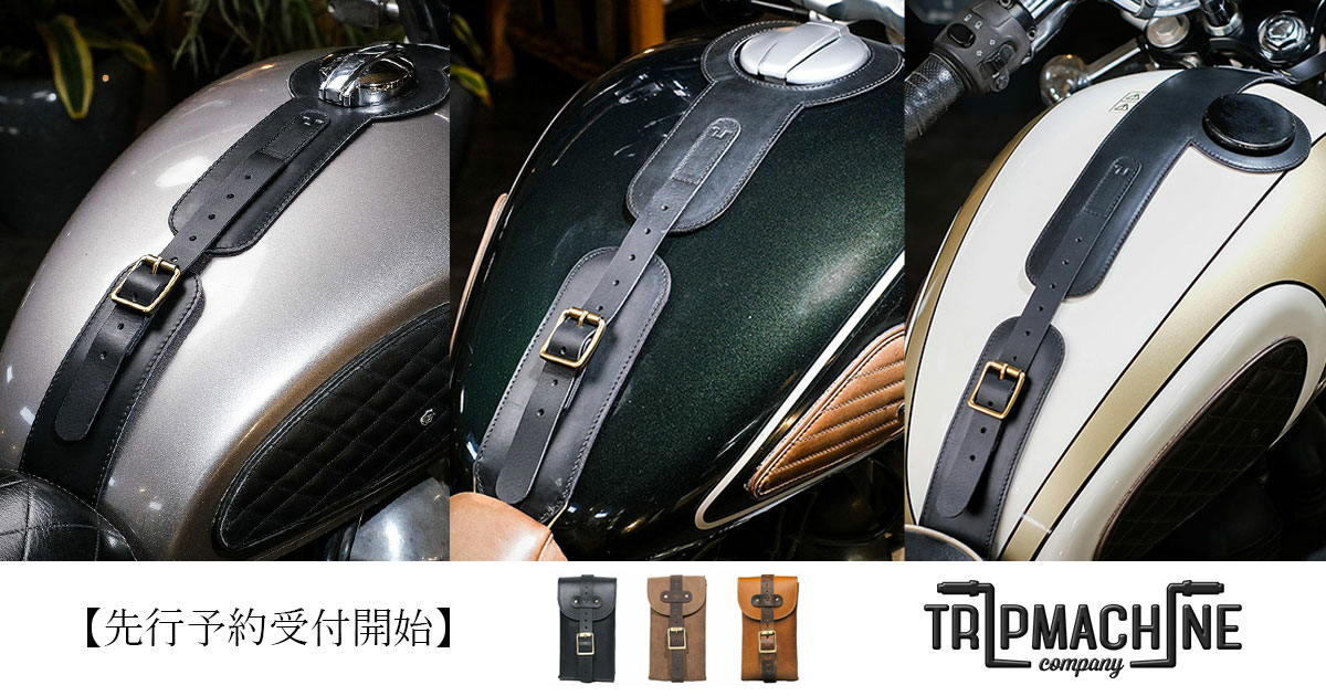 タンク中央にレイアウトされるストラップとユーティリティポーチの組み合わせは、バイクのスタイルを損なうことなく、必要なものを常に手の届くところに置いておくことができます。