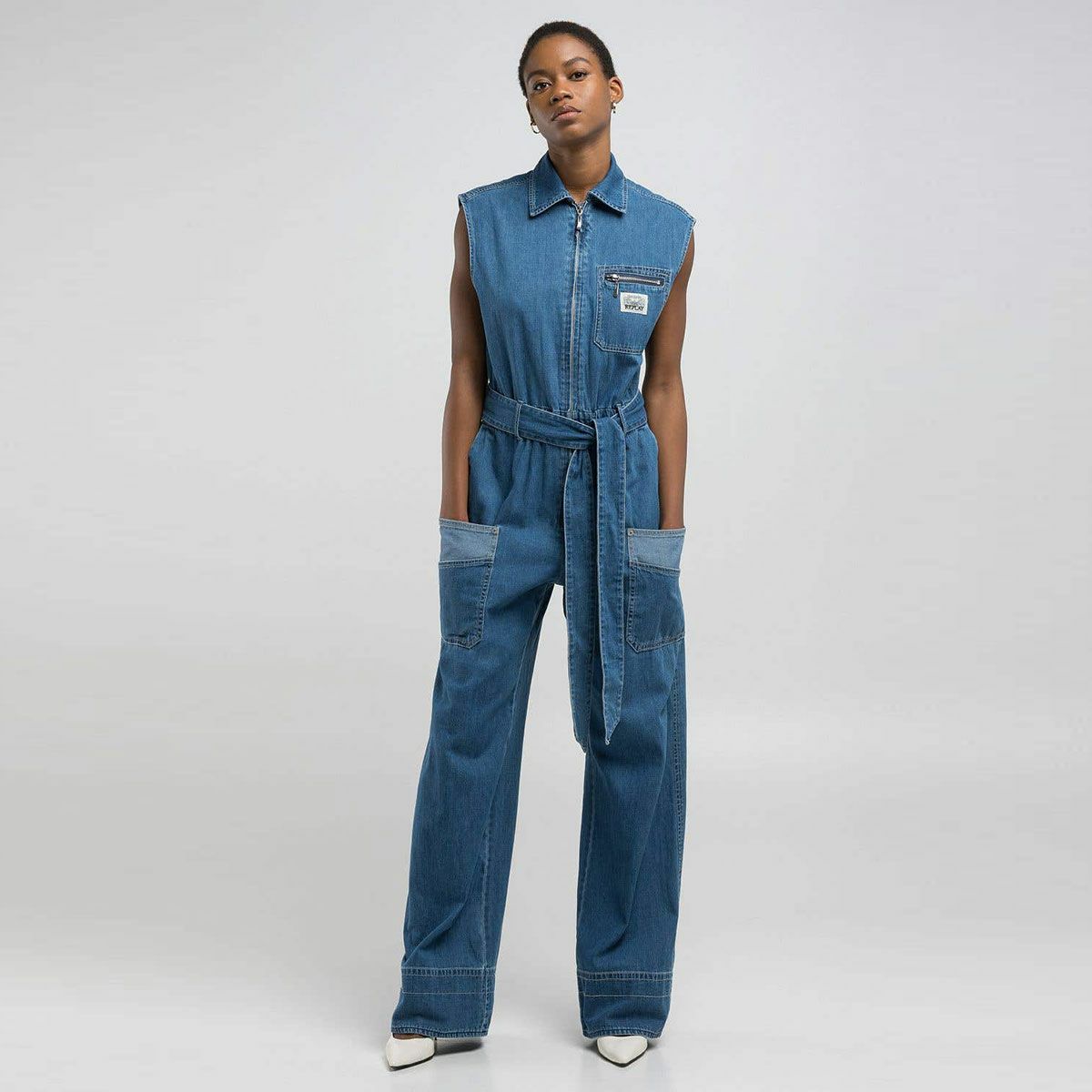 クラシックカーから颯爽と現れそうな大胆さと、デニムならではの良いラフさを感じるデザイン。アクセントのウエストベルトとボトムへ広がる美しいAラインが、スタイルを良く感じさせてくれます。
