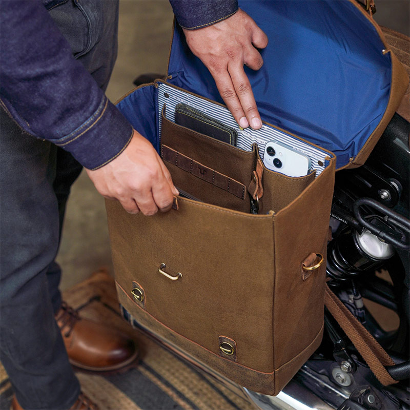 取り付けたサドルバッグをサッと外して、そのままショルダーバッグとして使用できるので、出先でも持ち運びできる頼もしいサイドバッグです。