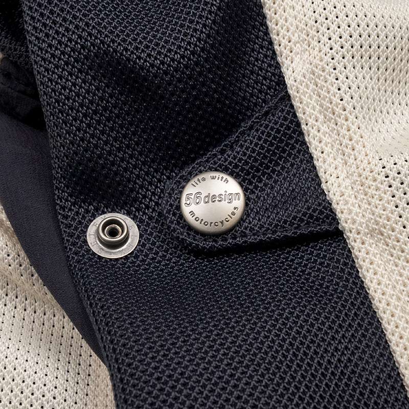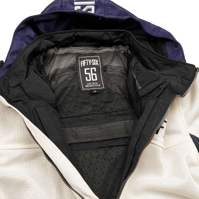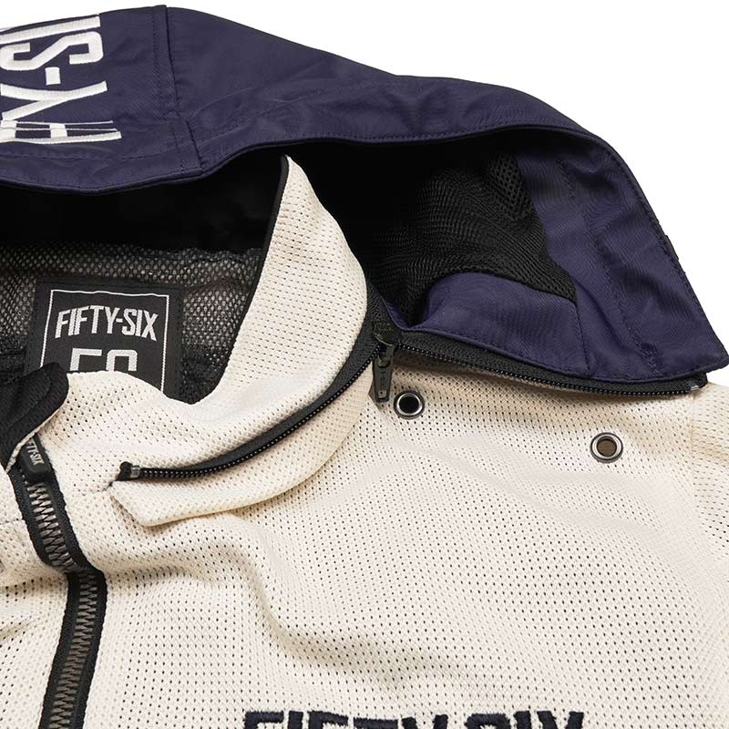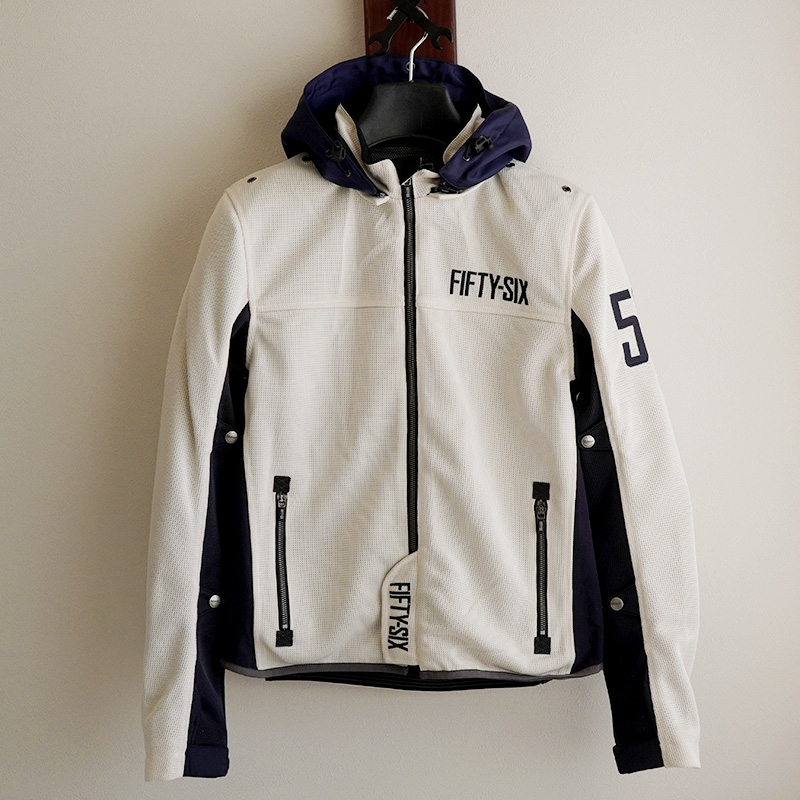 『カラーフーディメッシュジャケット EVO』は滑らかなメッシュ素材。アイボリーは暖かな季節にも映える優しい雰囲気。やや短めの着丈で、フードはスナップボタンで固定も可能。タンクガードやプロテクター、必要な機能はすべてそろっています。また内側の調節用スナップボタンは程よいアクセントに。