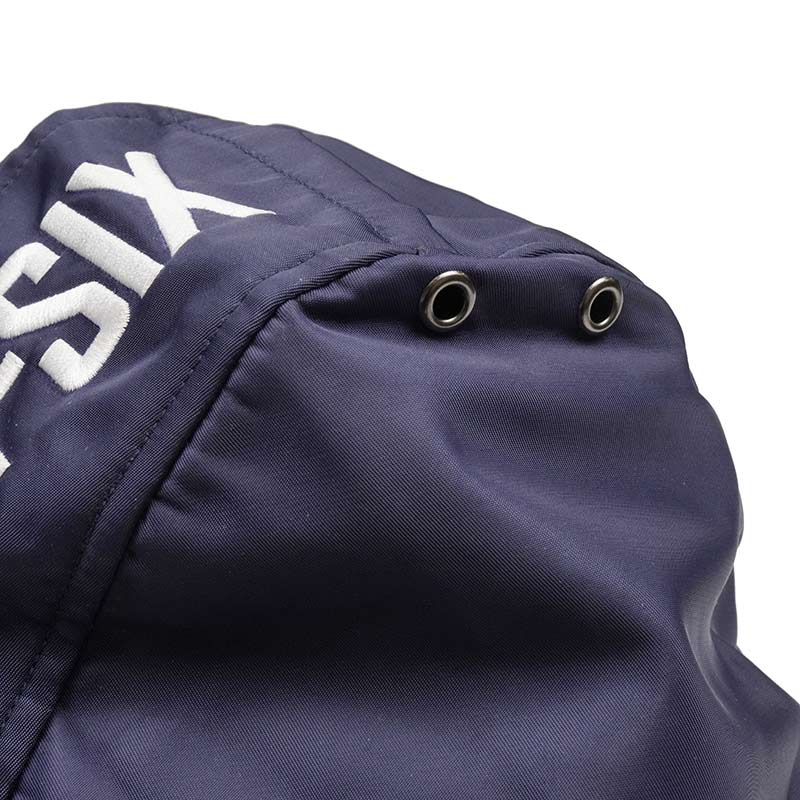 取り外しが可能なフード。肩にハト目で通気口が用意されています。