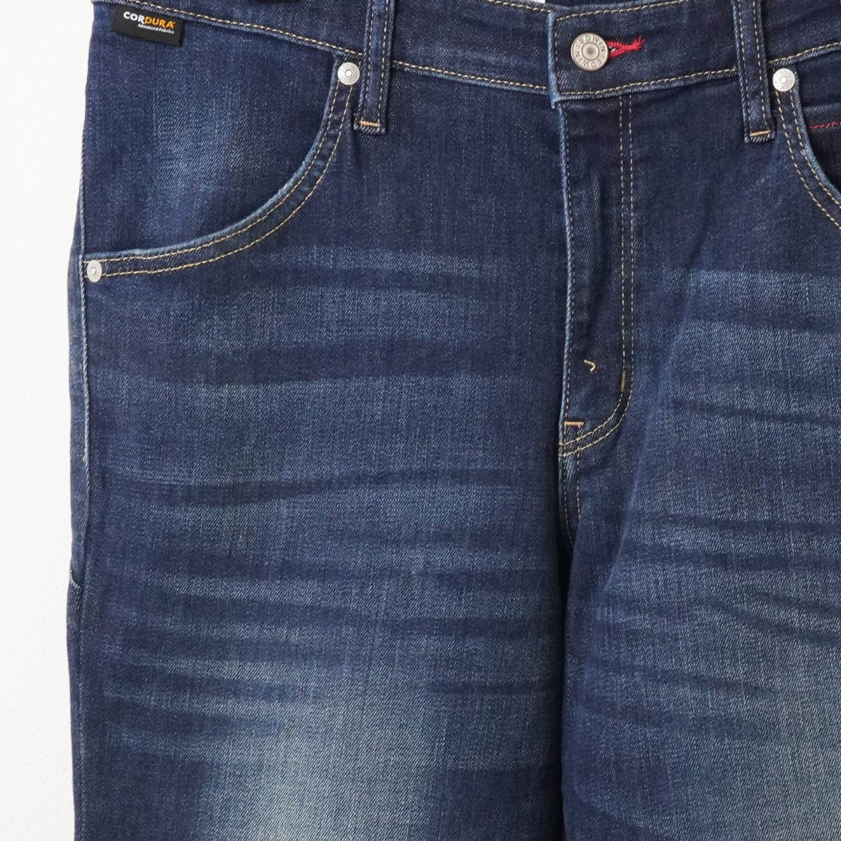 スリムタイプのジーンズをライディング用として実現する為、耐久性を誇るコーデュラ®を使用。ワンウォッシュのみならず、高い技術力を誇るエドウィンの加工技術で生まれたダメージウォッシュも用意されております。