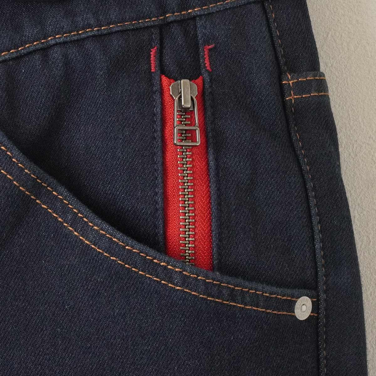 綿100%デニムに比べて約3倍近い耐摩耗性を実現しつつ、強度とは真逆にあるはずの着心地を裏地をつける事で実現させた新しいデニム生地が※『D.E.F.』デニムです。