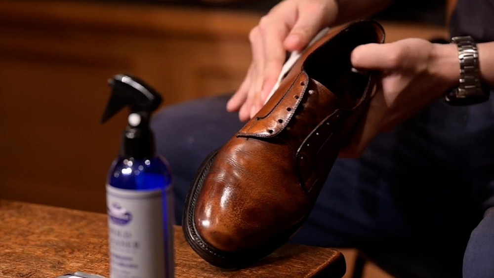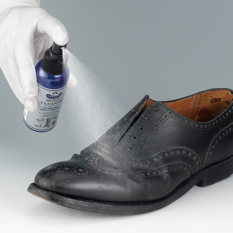 発生してしまったカビの除去が終わった、またはカビの生えていないシューズでしたら、カビの発生を防ぐために「モールドクリーナー」をかけます。モールドクリーナーを吹きかけておくことで、靴底や靴の中の湿気がたまりやすい場所にもケアができます。乾燥後はクリームなどでケアをしてあげれば完了です。