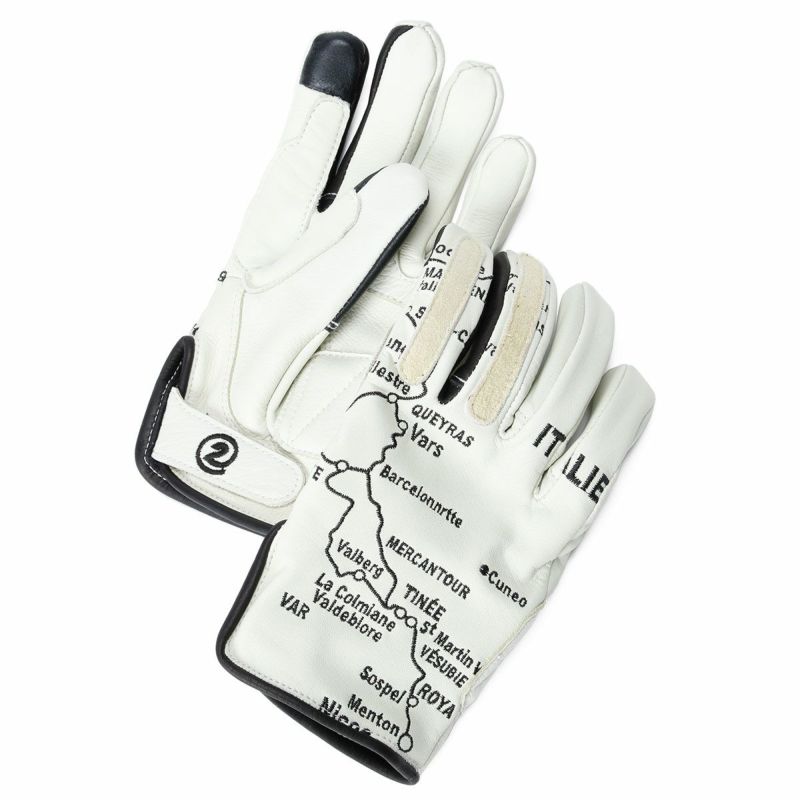 グローブの左右に、縦に連なるアルプス山脈の地図が刺繍されており、指先にはバイザーやゴーグルを拭くのに使用可能なレザーが両手の人差し指と中指にレイアウトされています。しなやかな素材感で、裏地がついていないため、使い始めから馴染むような感覚が得られるかと思います。