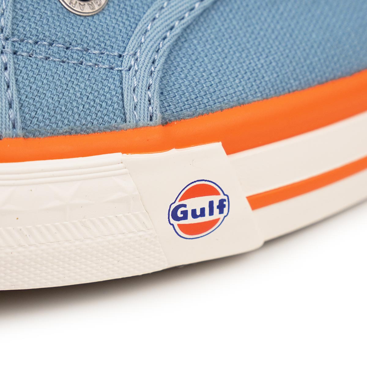 ヒールに左右非対称のプリントを施し、再度には2か所のGULFロゴをレイアウト。F1マシンさながらの飾りつけで、シンプルになりがちな春から夏のコーディネートにピッタリの1足。