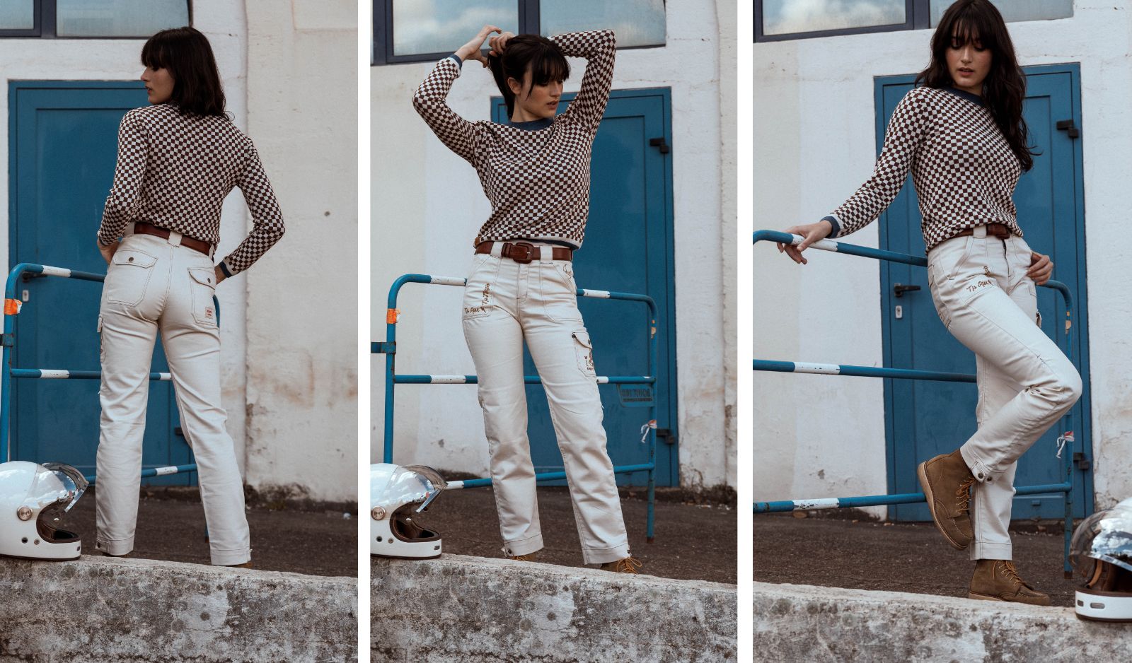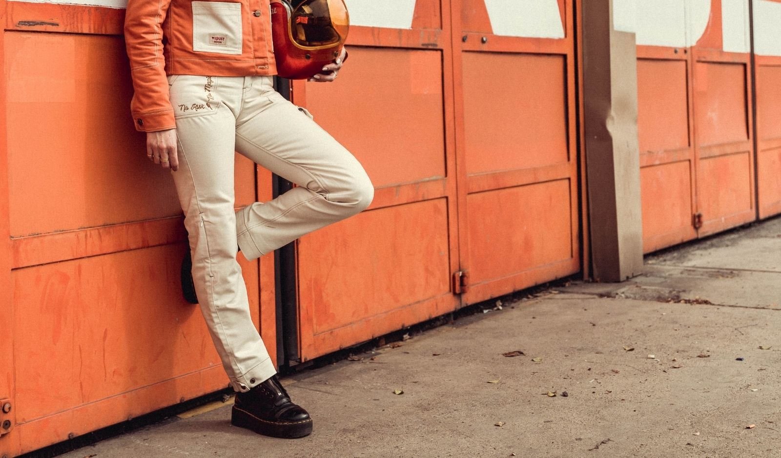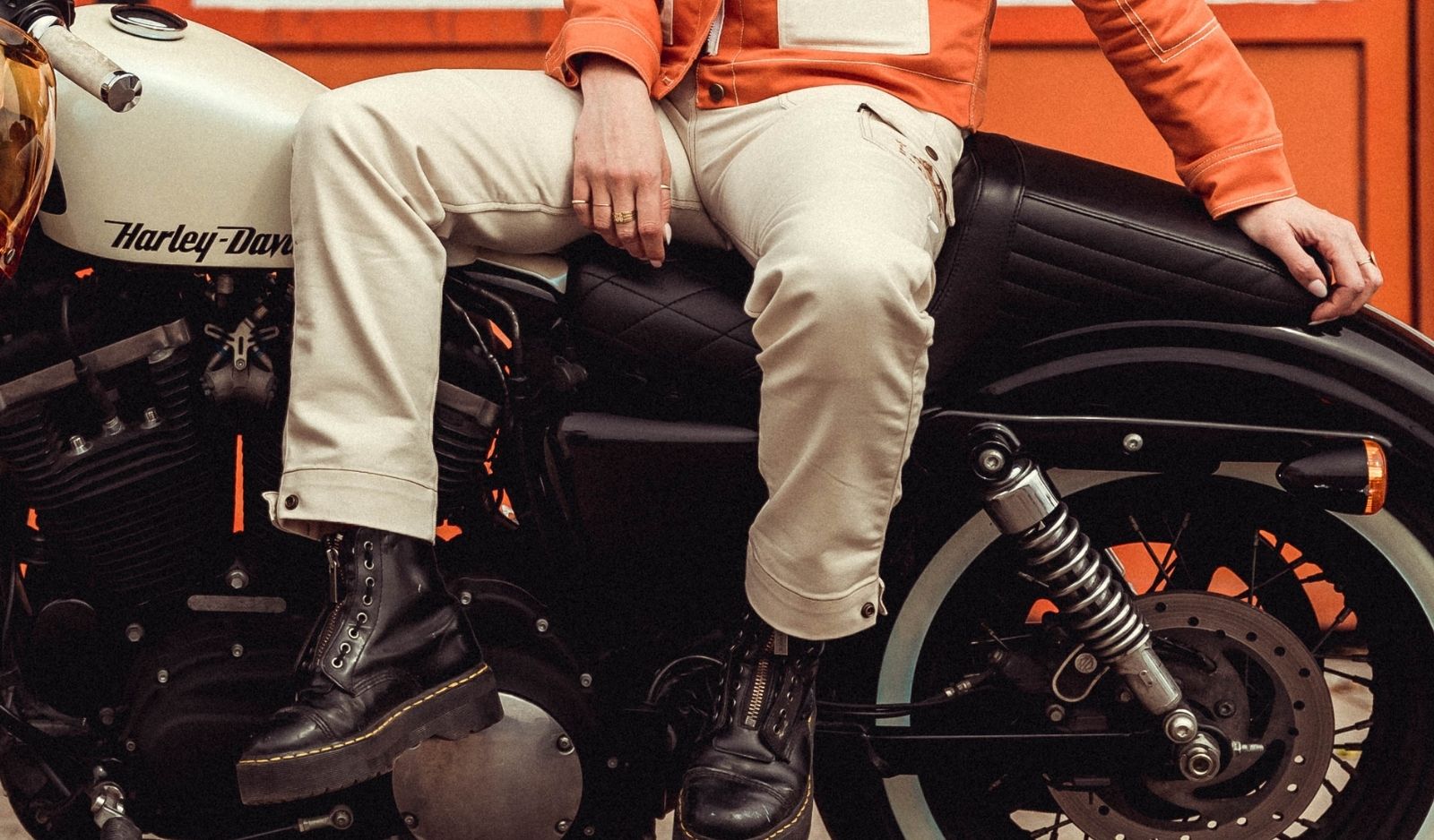 CE認証(AA等級PPE)を取得しており、耐摩耗性・耐裂性に優れ、腰と膝には取り外し可能なプロテクターが装備されています。安全性はもちろん、快適さやスタイルにもこだわり、ウエストはしっかり支えるハイウエスト仕様で、幅広で頑丈なベルトループはベルトをぐっと引っ張ってもびくともしません。シルエットも美しく、着るだけでスタイリッシュに決まります。