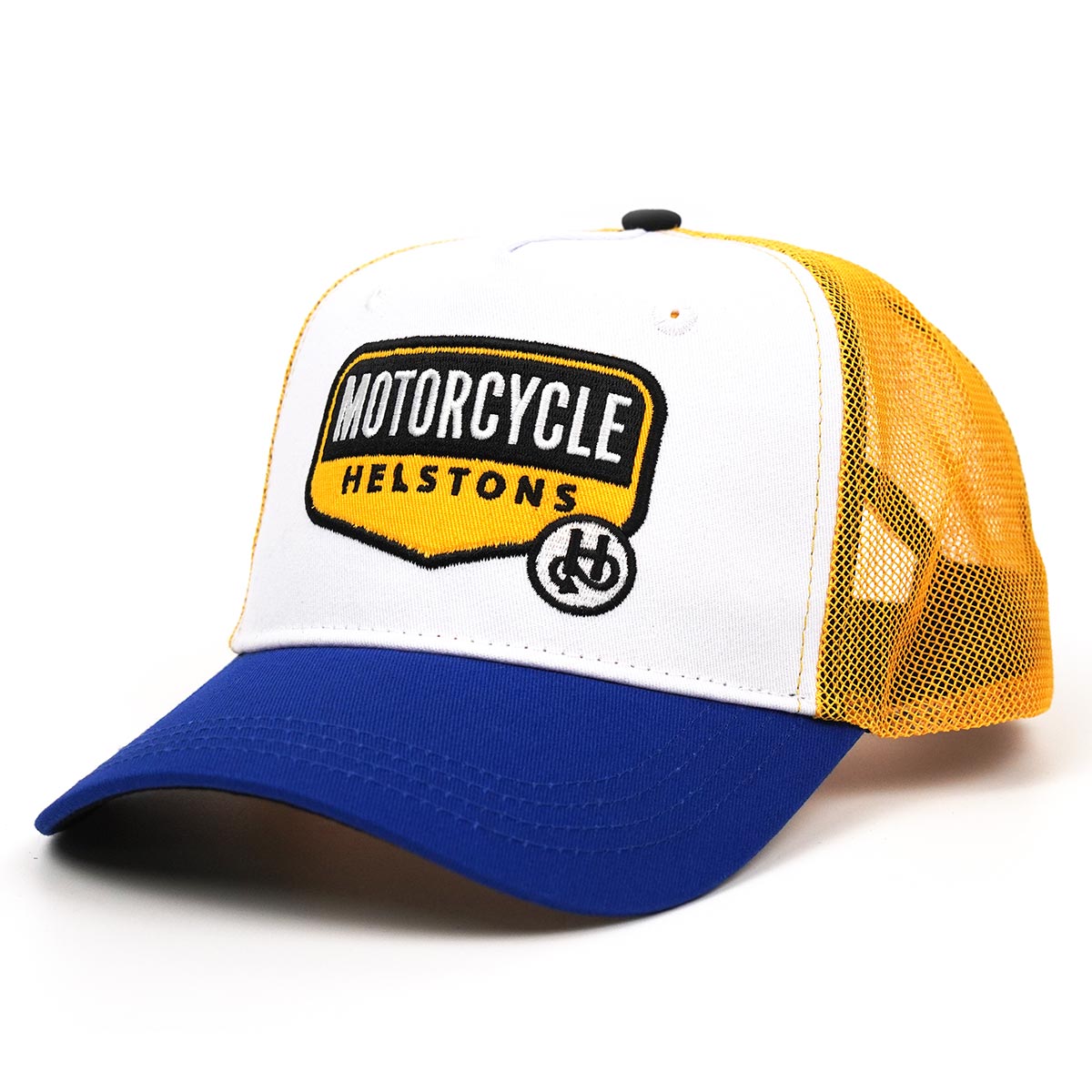 あつい夏の日にもうってつけのトラッカーキャップ。真っ青な青空のもと、バイクを降りた時にかぶりたくなるような鮮やかさとポップさを兼ね備えています。