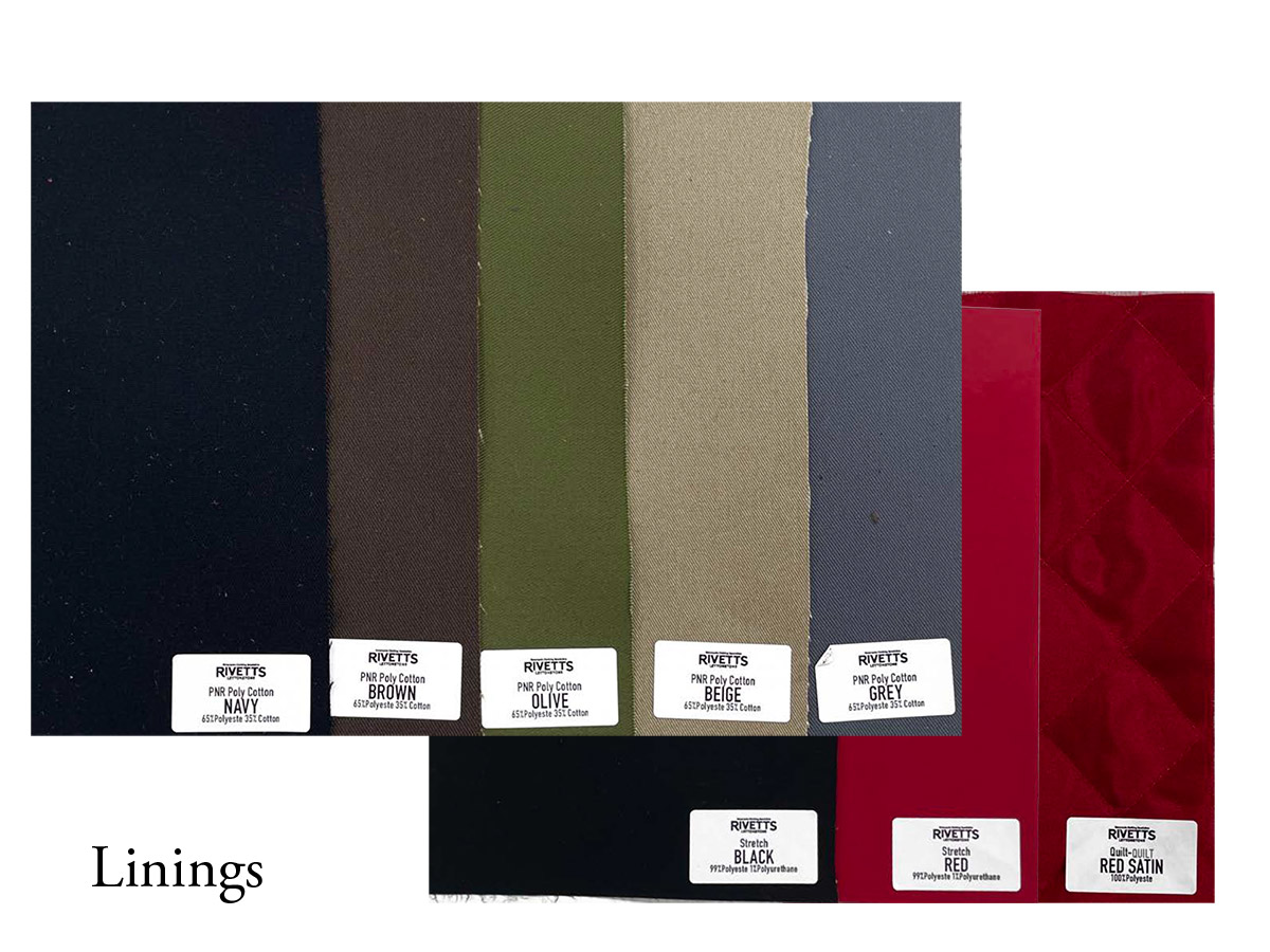 袖丈や着丈の調整はもちろん、数種類のライニングやジッパーまでも選べることで魅力あるご自身だけの一着をオーダーいただけます。