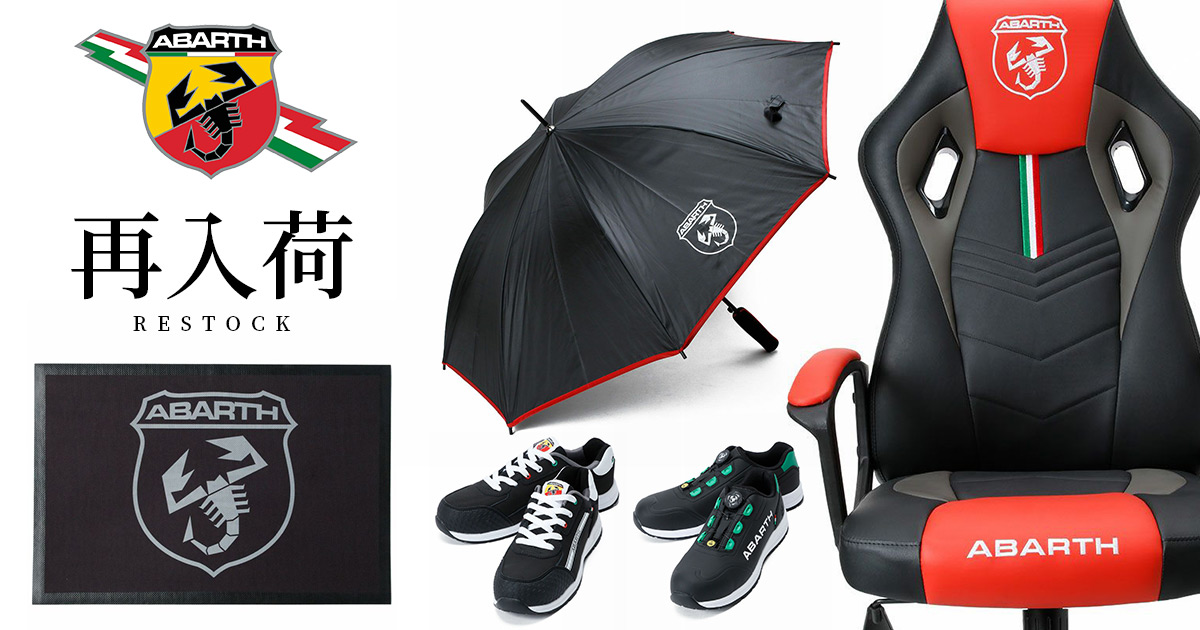 そんなアバルトから、好評を博しておりましたゲーミングチェアやフロアカーペット、日本では梅雨の季節にも嬉しいアンブレラが再入荷しております。サイズ欠け分、少量のみですがセーフティシューズも到着しておりますので、この機会に是非お買い求めください。