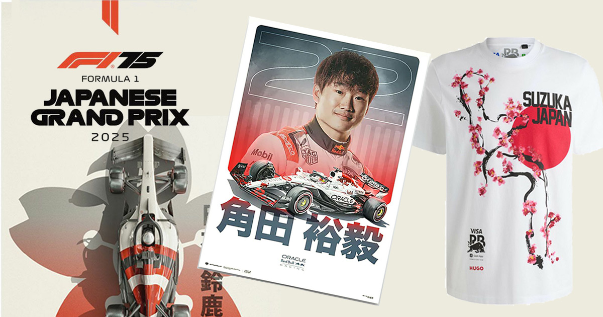 レーシング・ブルズの2025年新作Tシャツが再入荷いたしました。鈴鹿をイメージした一枚は、まだ続く今季のレース観戦にピッタリな一枚となっております。また、角田裕毅選手と日本グランプリの開催を記念したポスターがAUTOMOBILIST/オートモビリストより少量入荷しております。