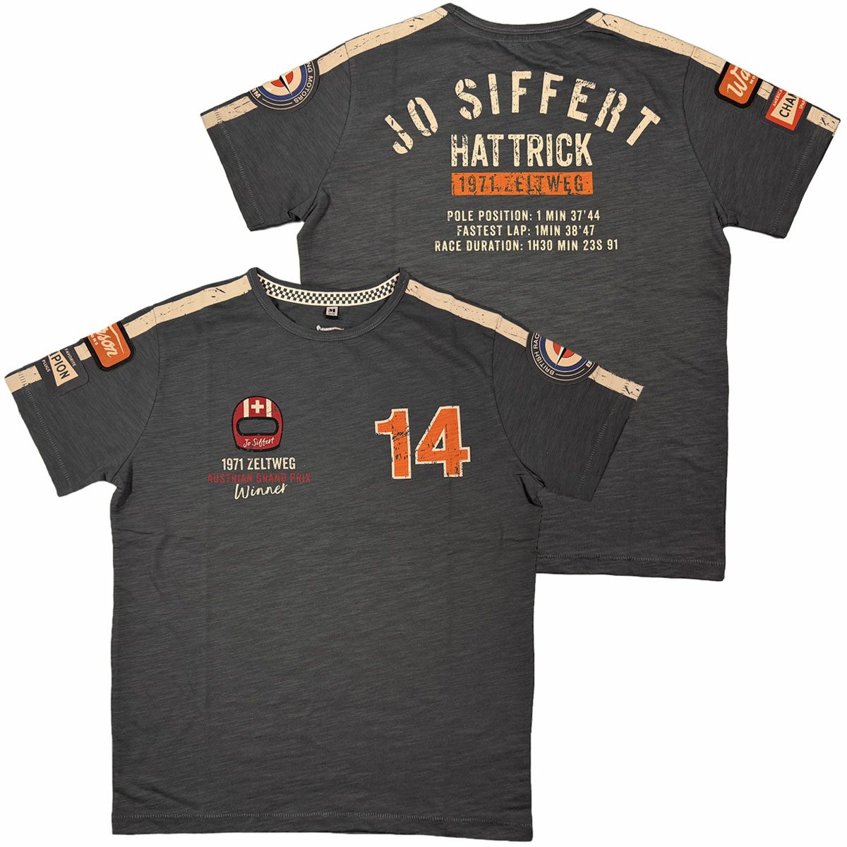 1971年にツェルトベクで開催されたオーストリア グランプリで BRM P160を駆り、1つのレースで「ポールポジション獲得」「決勝レースでのファステストラップ記録」「優勝」の3つを成し遂げ、見事に達成したハットトリックをインスパイアしたTシャツとなっております。その他、人気の定番モデルが再入荷をしております。