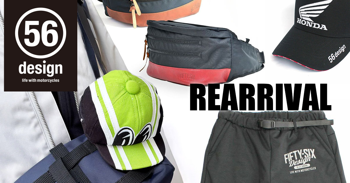 「LIFE WITH MOTORCYCLE」をコンセプトに多くのライダーを魅了するバイクアパレルブランド 56designより、人気定番商品各種が再入荷いたしました。欠品だったアイテムの追加が多数ございますので、ぜひこの機会に買い替え買い増しをご検討ください。