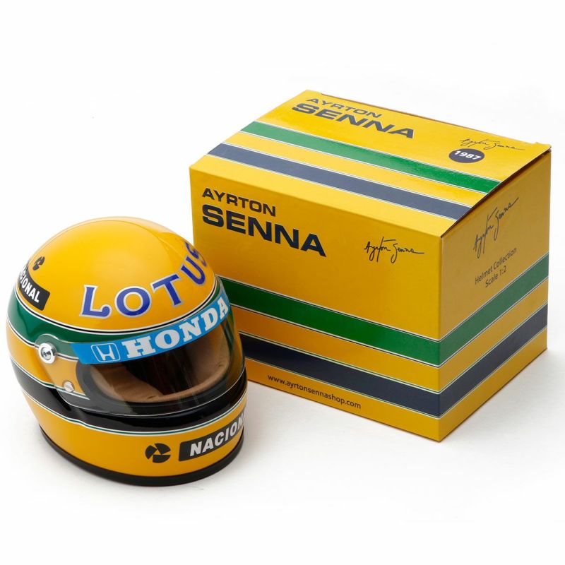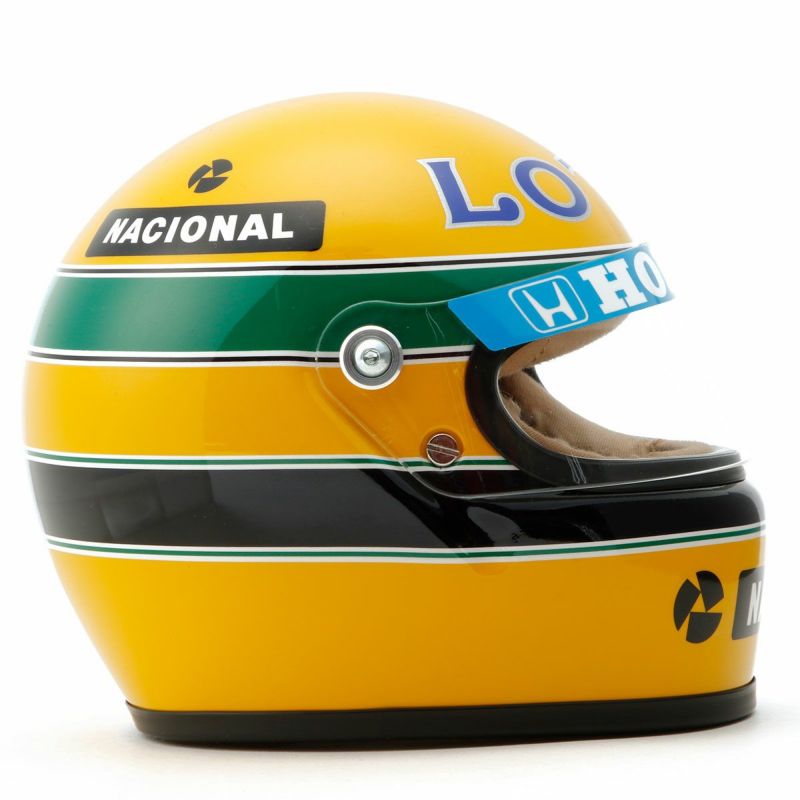 アイルトン・セナが"黄色いロータス"で活躍した1987年の1/2スケールのヘルメット。