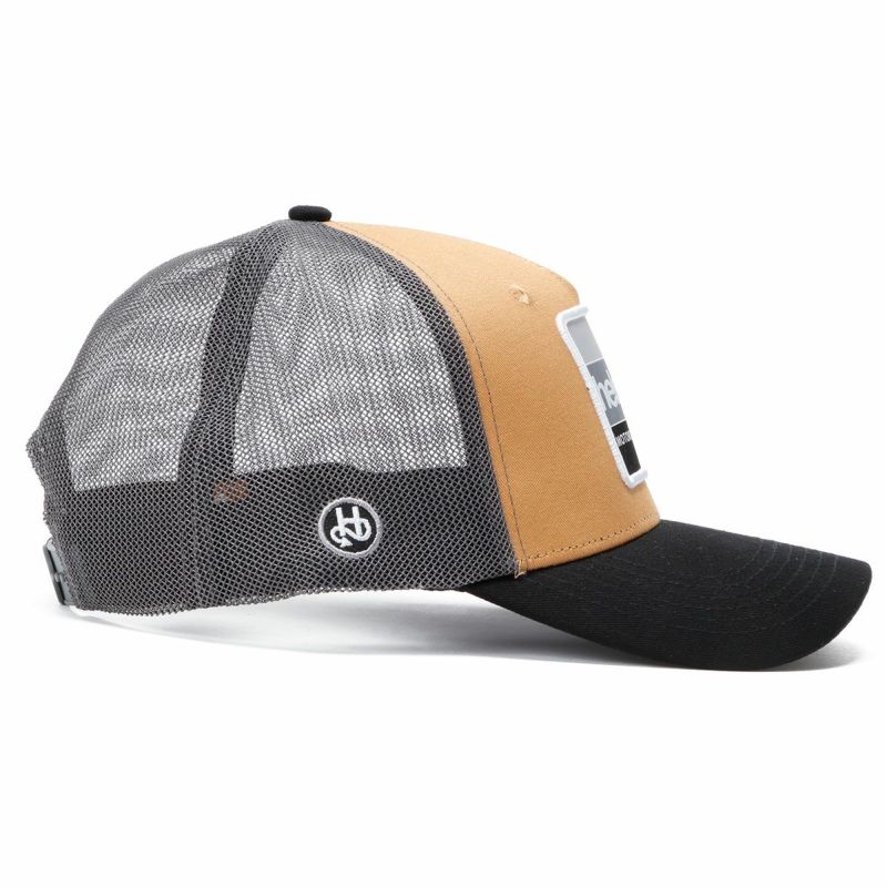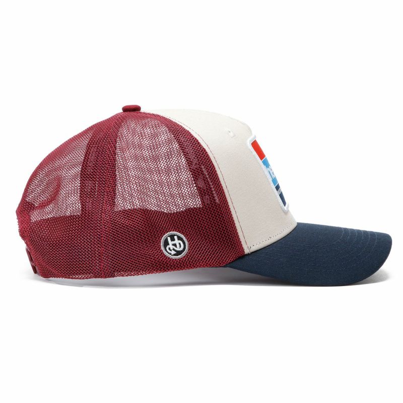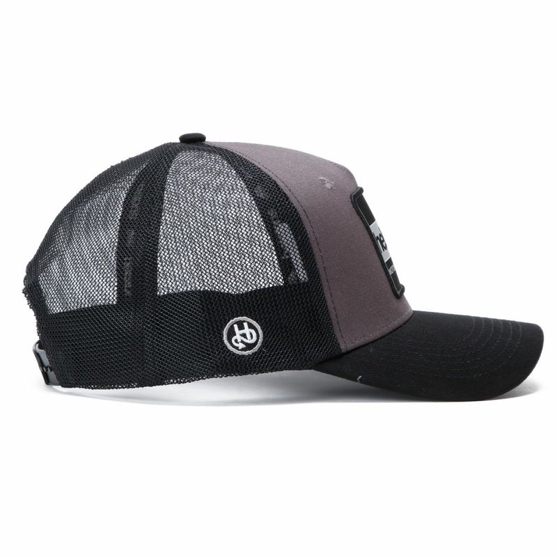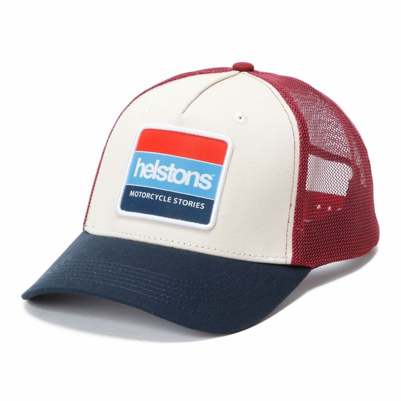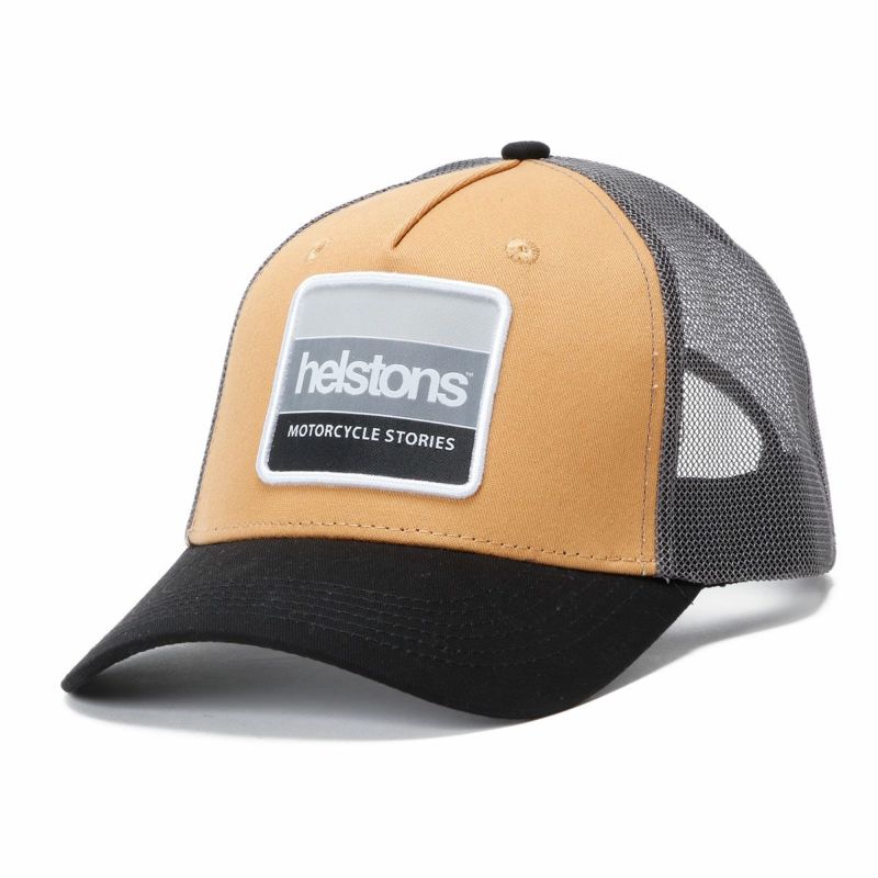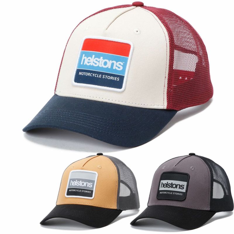 Helstonsのロゴパッチが施されたメッシュキャップ。アジャスター付きでサイズ調節が可能です。