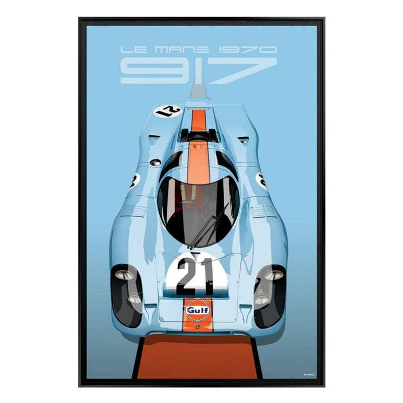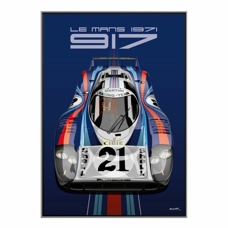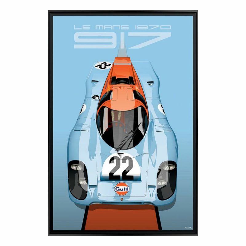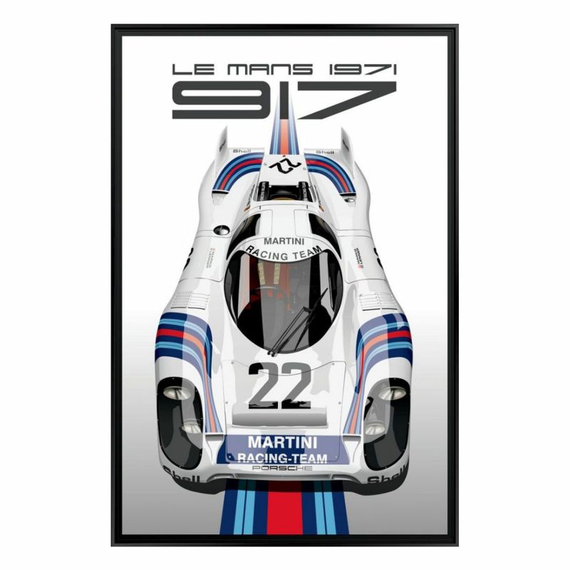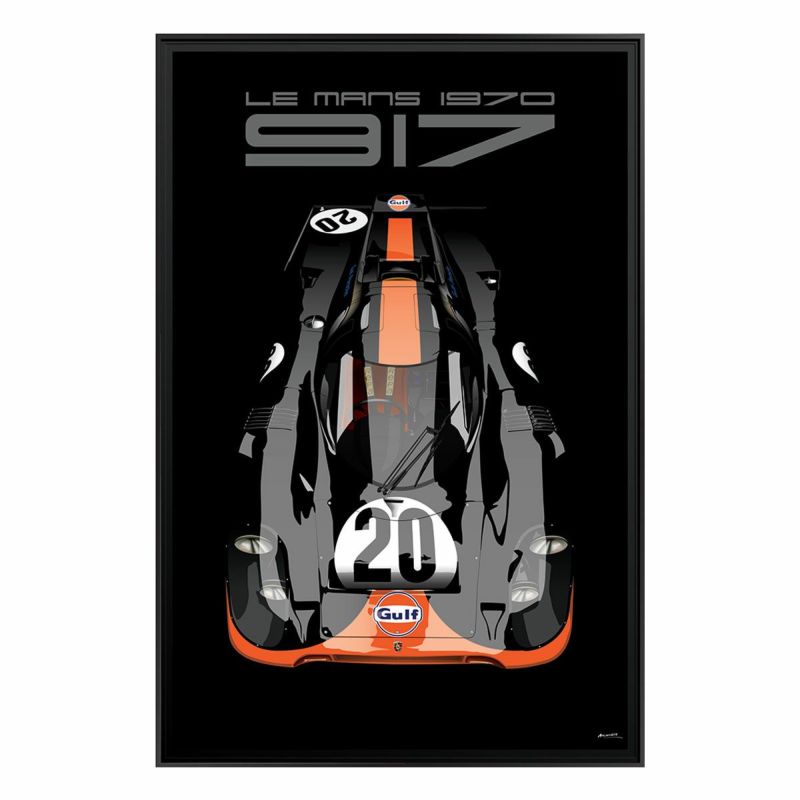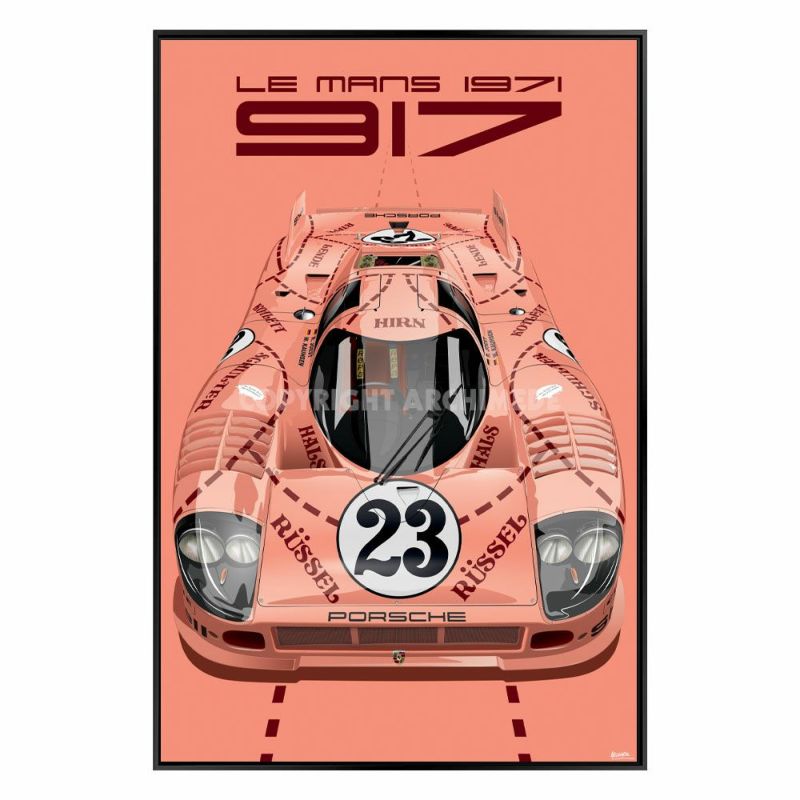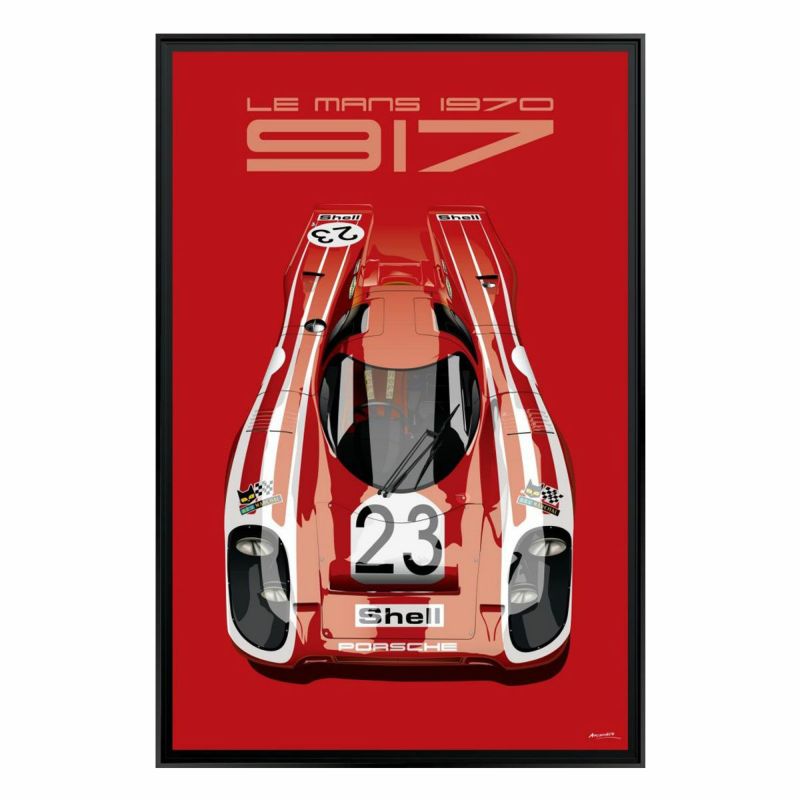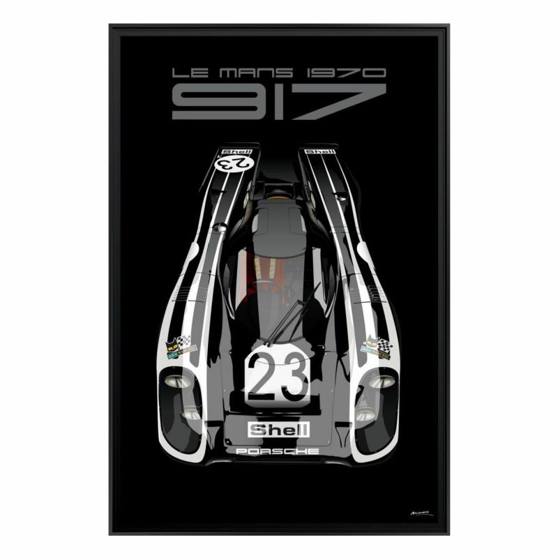 1970年代前半に圧倒的な強さを見せた、ポルシェ 917を描いた額装ウッドパネル。