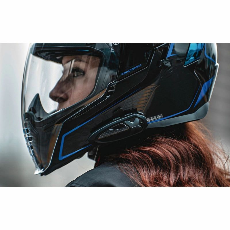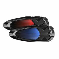 Bluetooth5.0接続で高速道路走行時の通信距離約2km(市街地約600m)。10人同時通話が可能で、インカムのフェイスプレートが変更できる5色のオプションプレートが付属しています。