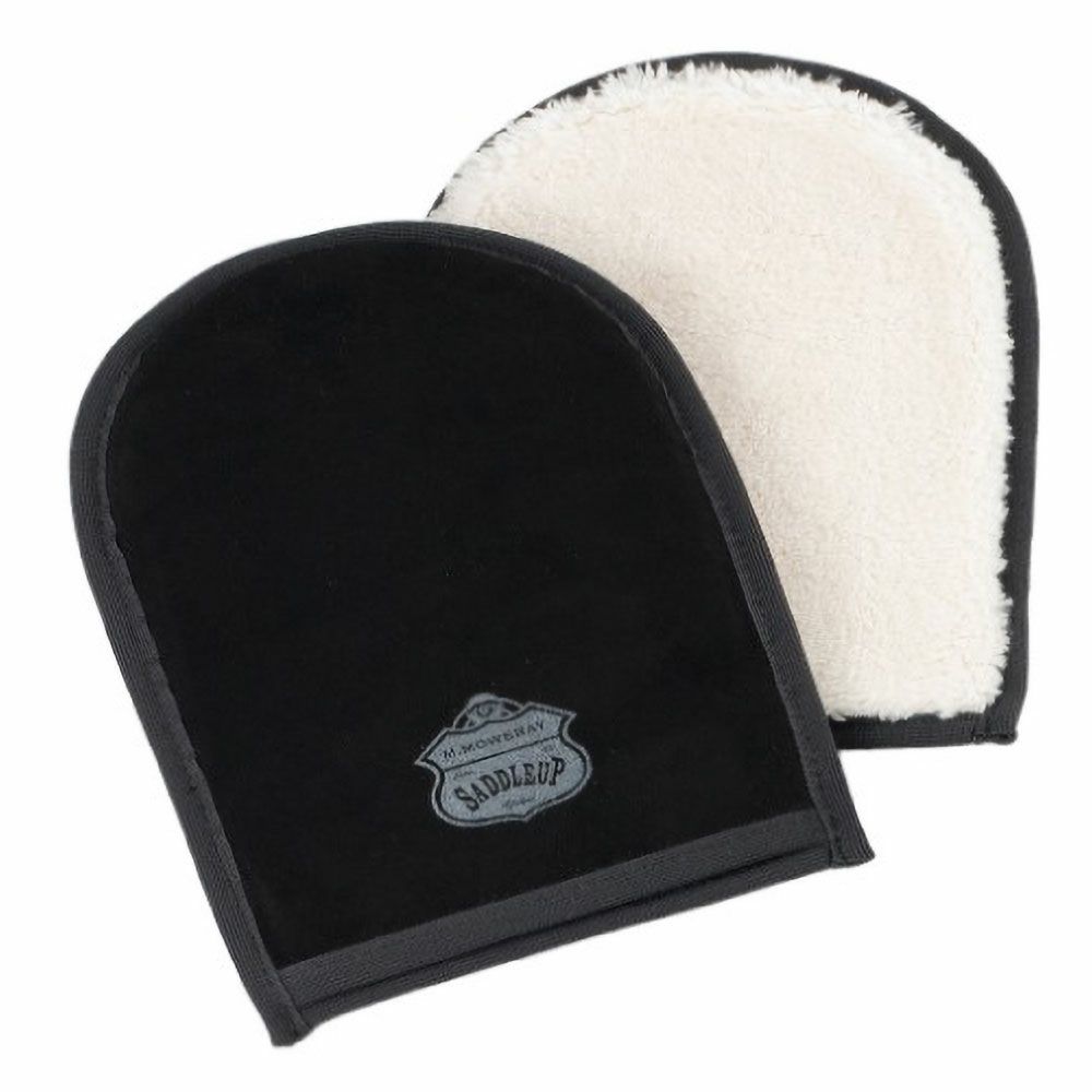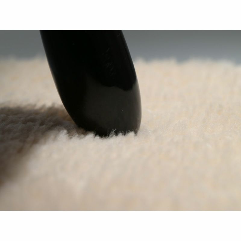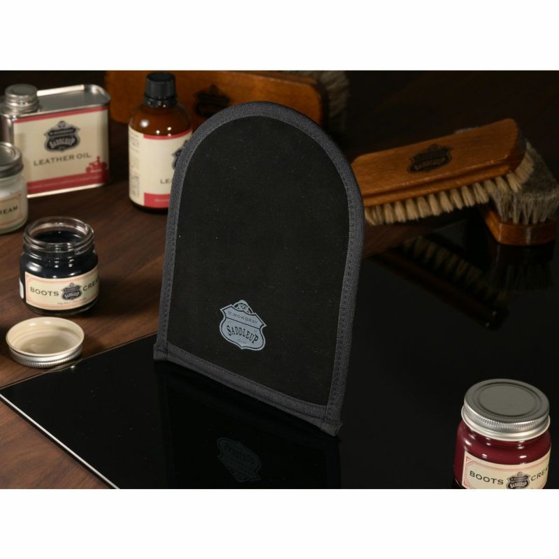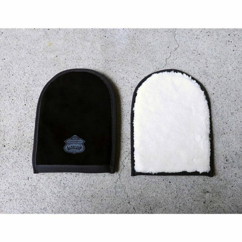 表面はクリームを拭き取りやすいポリエステル性のボアタイプ、裏面は表面より光沢感を足しやすい、「山羊革」を使用したスエードタイプで表・裏の2面で使用することができます。