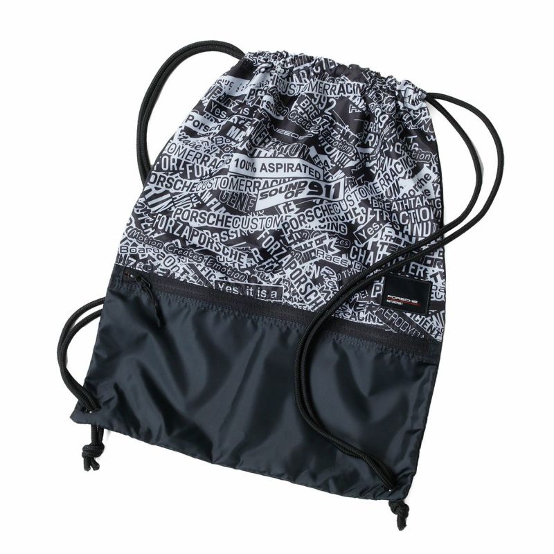 ポルシェにまつわるフレーズがモノトーンで散りばめられたユニークなデザインに仕上がっています。