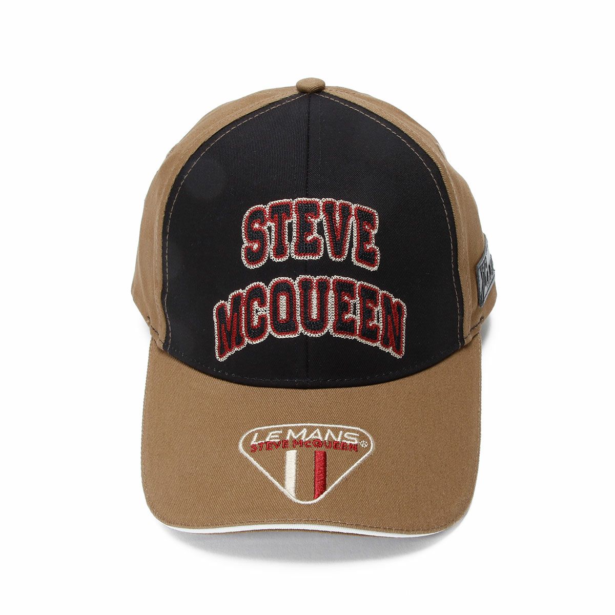 キャップ正面に刺繍されたスティーブ・マックィーンの文字と共に、ル・マン24時間レースオフィシャルのロゴや、レザーパッチがあしらわれています。