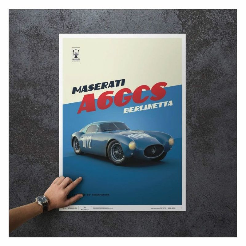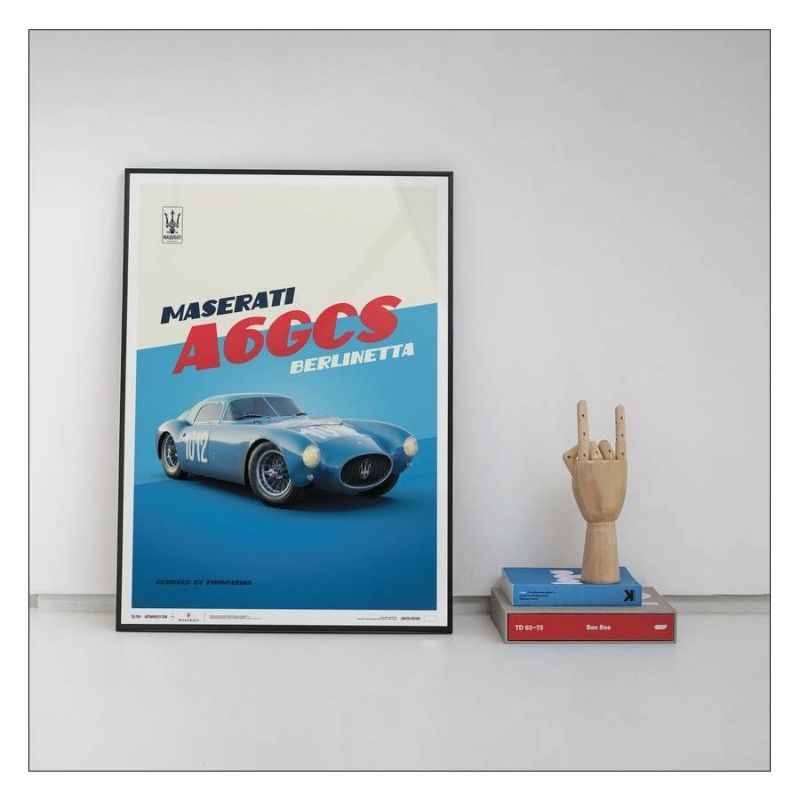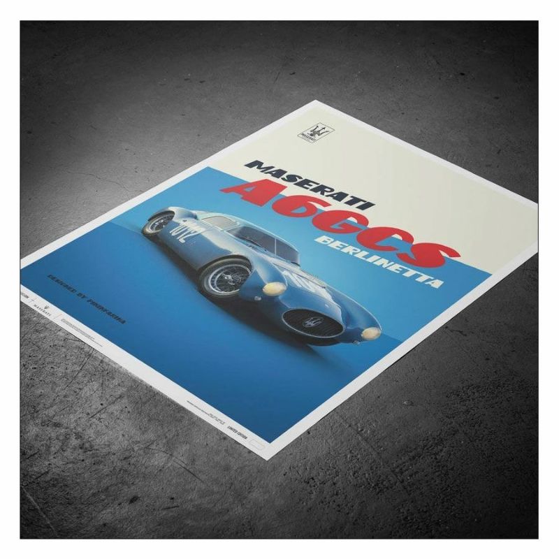 1954年のジーロ・ディ・ウンブリアにおいて、総合7位のリザルトを残した、マセラティ A6GCS ベルリネッタのポスター。