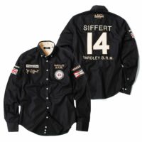 プリントや刺繍、ワッペンなど当時のスポンサーやネームロゴなどが贅沢に配されたWarson Motorsのシャツシリーズです。