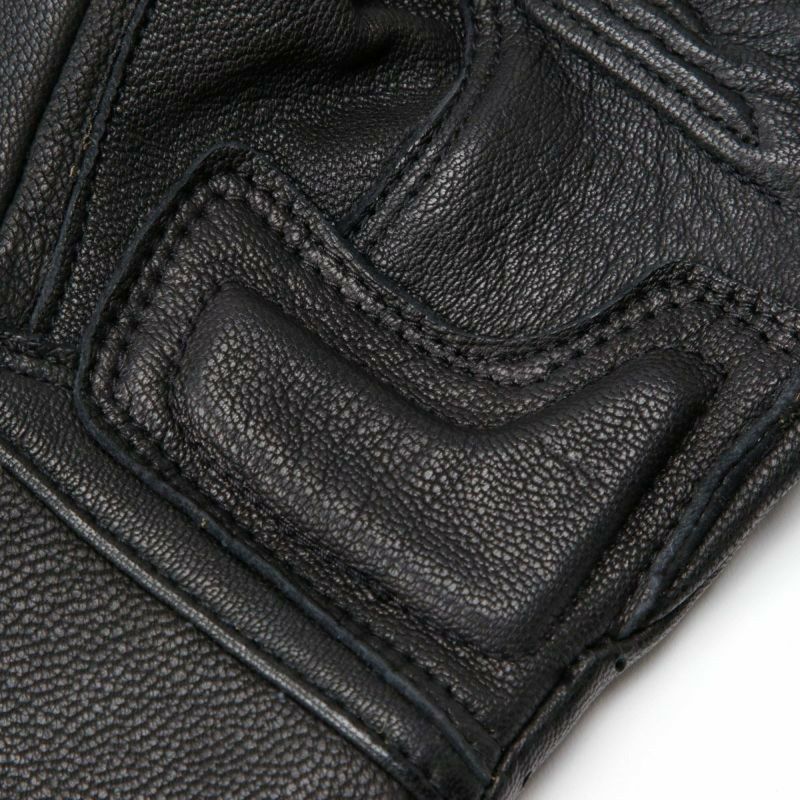 素材と構造:0.7~0.8mm厚の上質なゴートスキン(山羊革)を使用し、柔軟性と耐久性を兼ね備えています。手のひら側にはポリエステルパッドが内蔵され、快適なフィット感を提供します。