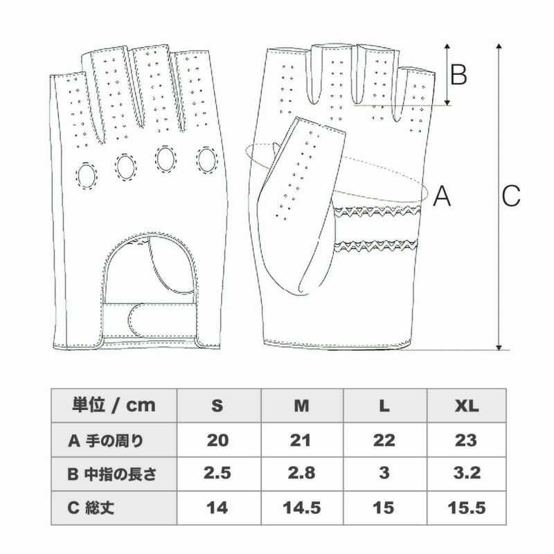 中指と薬指にストライプが入ったオシャレなトリコロールカラー。手のひら全体に小さい穴が開けられ、通気性を確保。手首はスナップボタンで脱着するタイプとなっています。